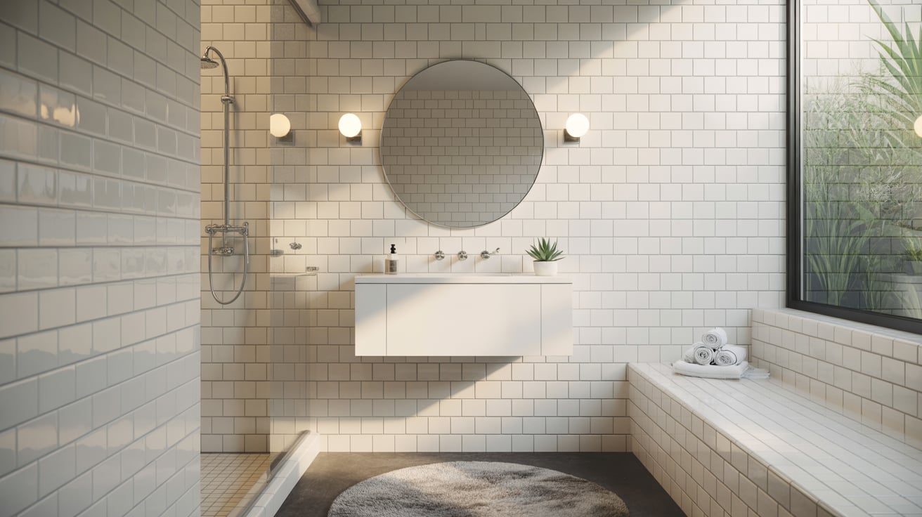 - Pair with soft matte tiles to avoid glare
