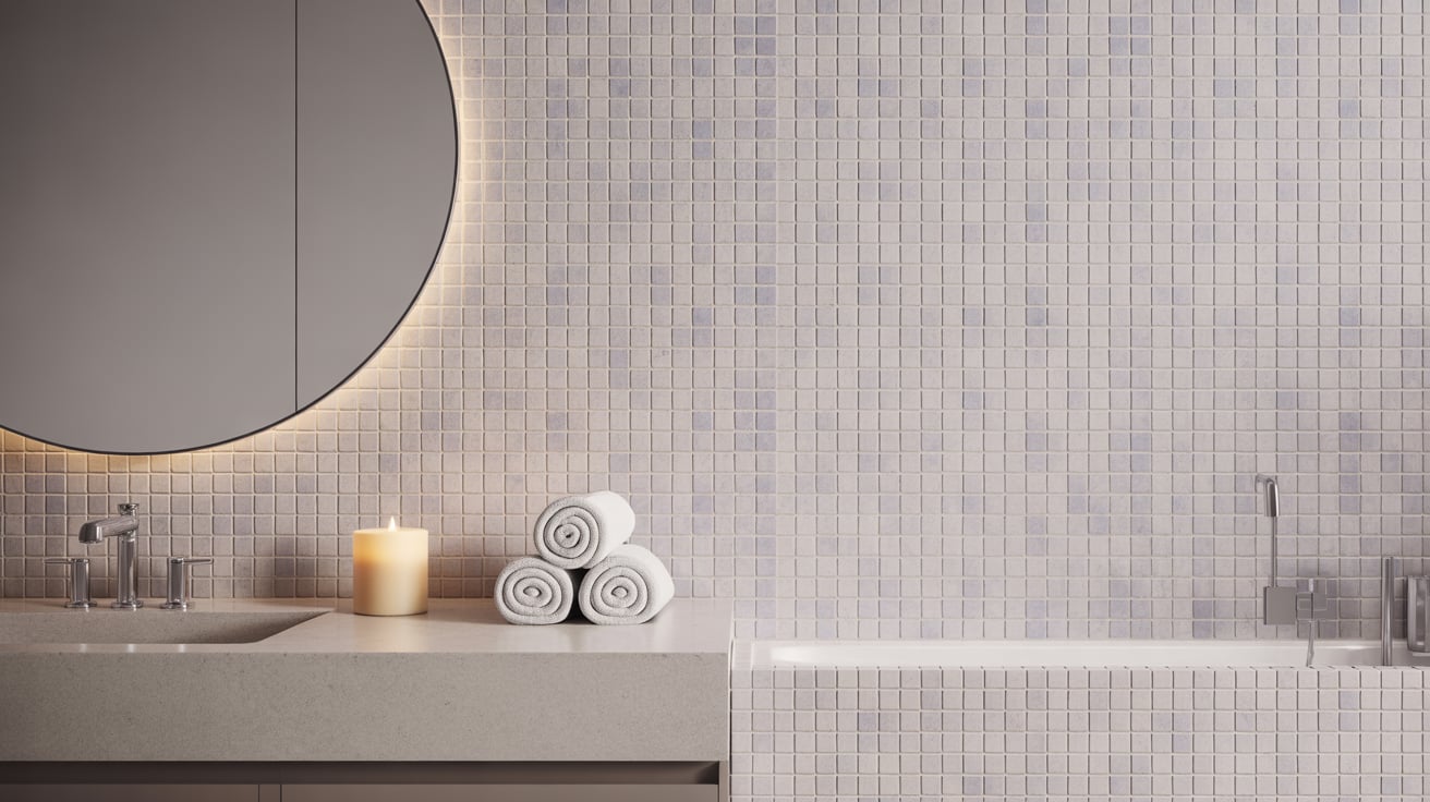 Mosaic tiles work because they bring intricate detail without dominating the room. Perfect for feature walls, shower niches, or backsplashes. They also pair well with larger tiles for balance.