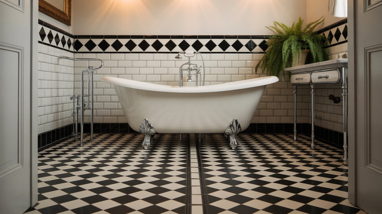 I wanted a vintage-modern vibe in my retro-inspired bathroom. Black and white checkerboard tiles gave exactly that! It felt playful yet classic, making the bathroom memorable and stylish.