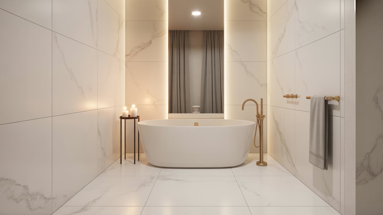 In a tiny apartment, I learned that large tiles make a bathroom feel bigger. Installing oversized tiles in a soft gray tone instantly opened up the space. Less grout lines meant a cleaner, modern look too.