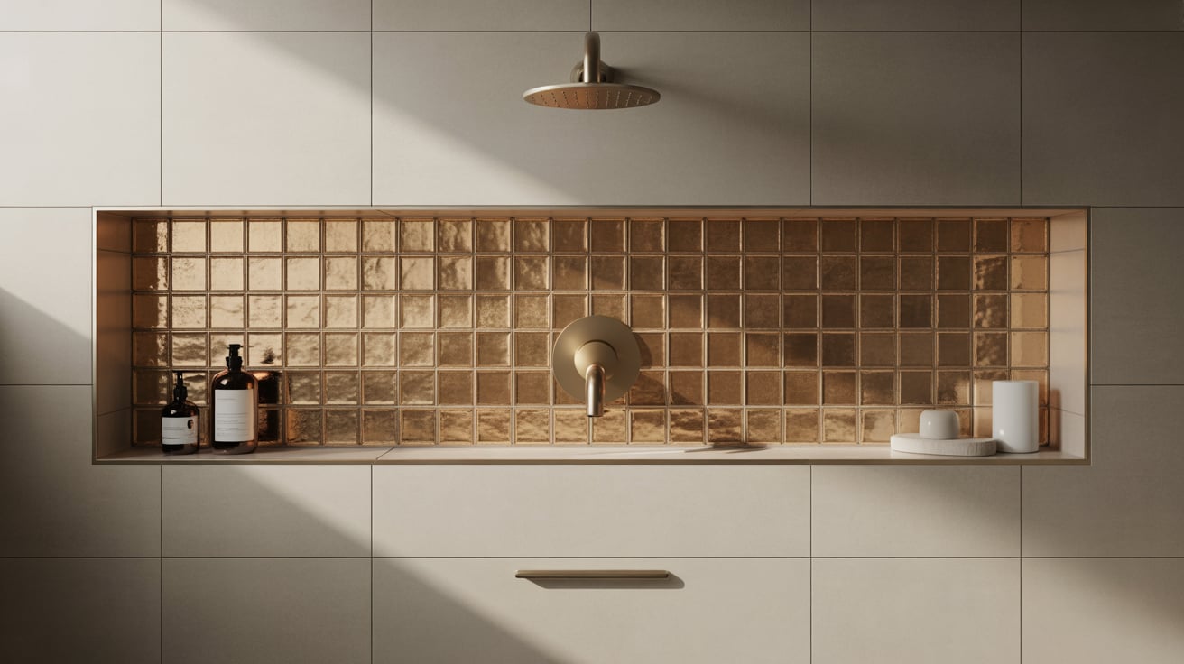 I once added metallic gold tiles as a shower accent, and it completely elevated the room. The shimmer caught the light and added a luxurious feel without being overpowering.