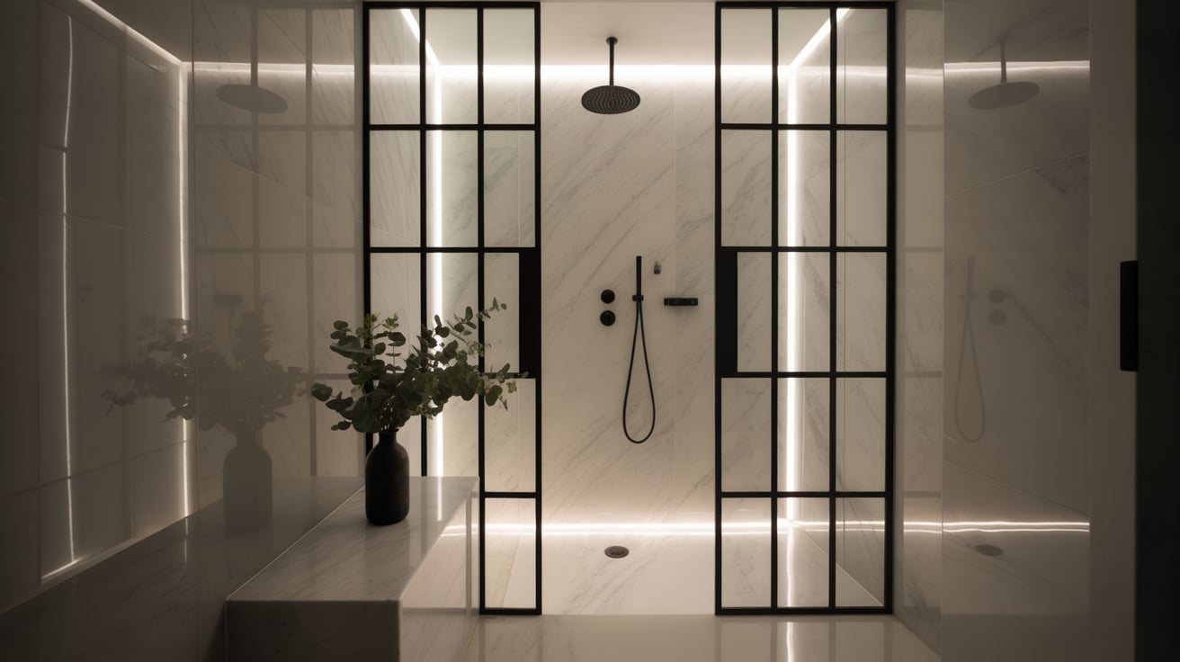 Black frames act like eyeliner for your shower area: they define, highlight, and add structure. The result is clean, confident, and incredibly Instagram-worthy.