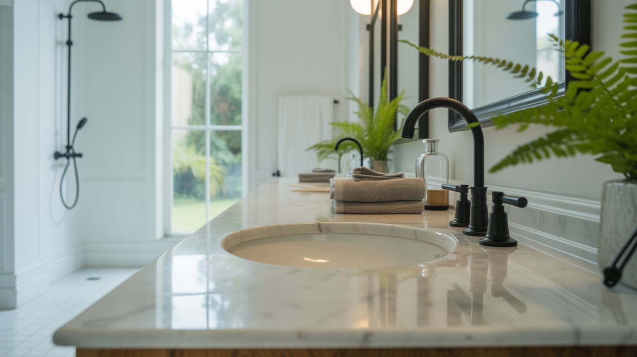 During a renovation, I paired black fixtures with a concrete sink — and it became an instant conversation piece. The mix of matte textures looked so high-end.