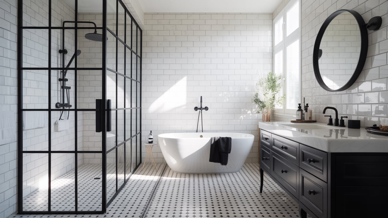 Balance Black Fixtures with Light Tiles