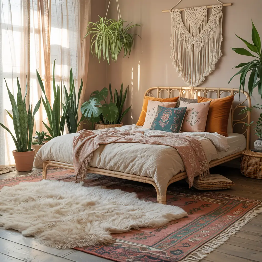 We’re talking macramé wall hangings, vintage rugs layered on rugs, plants cascading from every available surface, and textiles from around the world. The beauty of boho is that nothing needs to “match” in the traditional sense—it just needs to feel right.