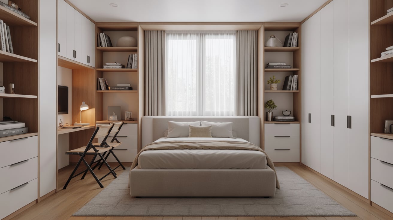 Our first wardrobe was bulky and blocked half the room. Switching to a tall, narrow wardrobe saved floor space and allowed better organization. Vertical storage is essential in small bedrooms.