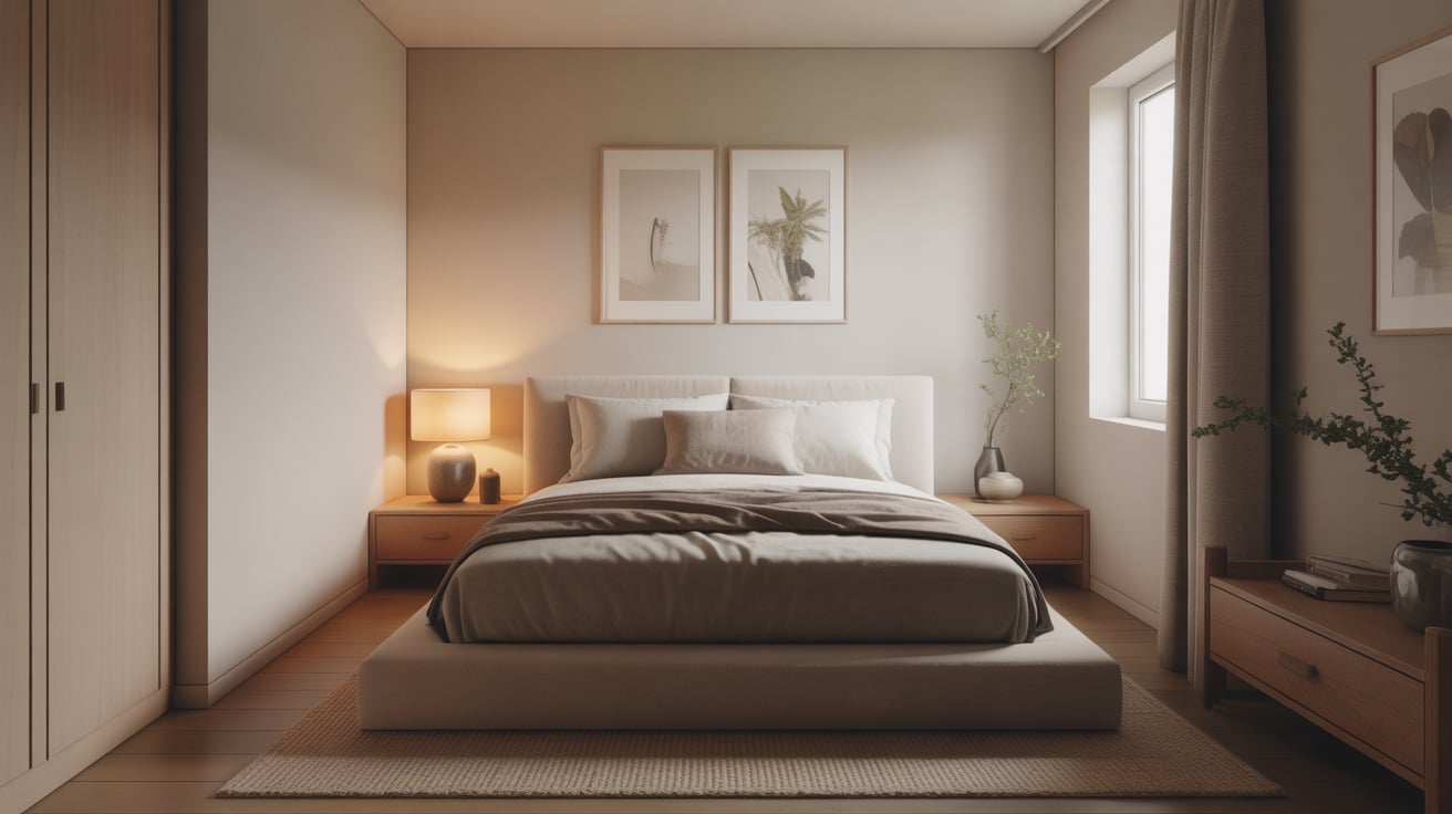 Minimalist beds work because they reduce visual clutter and open up floor space. Apply this by choosing low-profile frames, simple headboards, and bedding in soft tones.