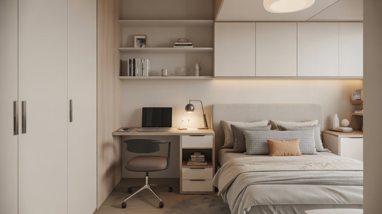 My first tiny bedroom had dark walls, and it always felt like a cave. When I switched to soft pastels and creams, the space instantly felt airy and bright. Even adding a few colorful pillows made it feel cheerful and inviting.