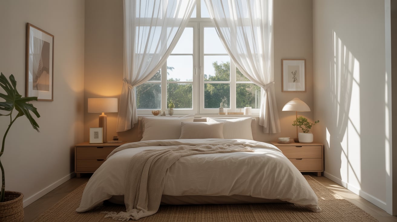 Initially, my small bedroom felt short and boxy. Moving the curtain rod a few inches above the window instantly made the ceiling feel taller. Using sheer curtains let light in while keeping it airy.
