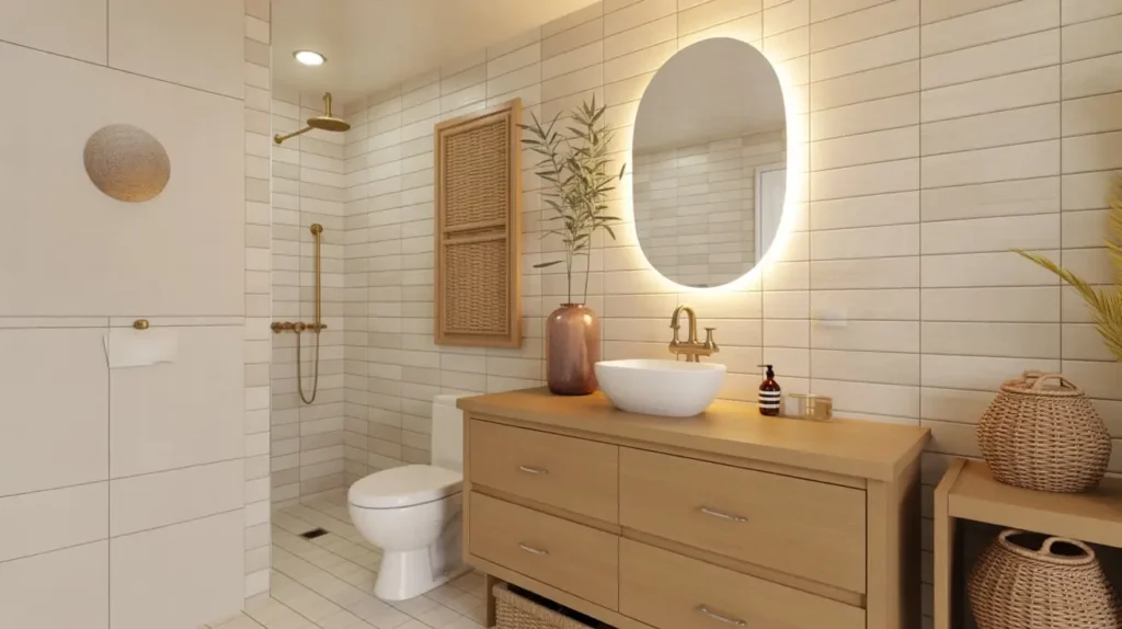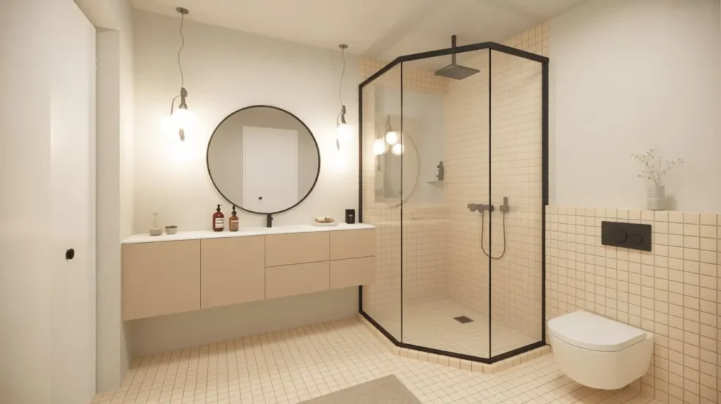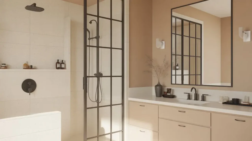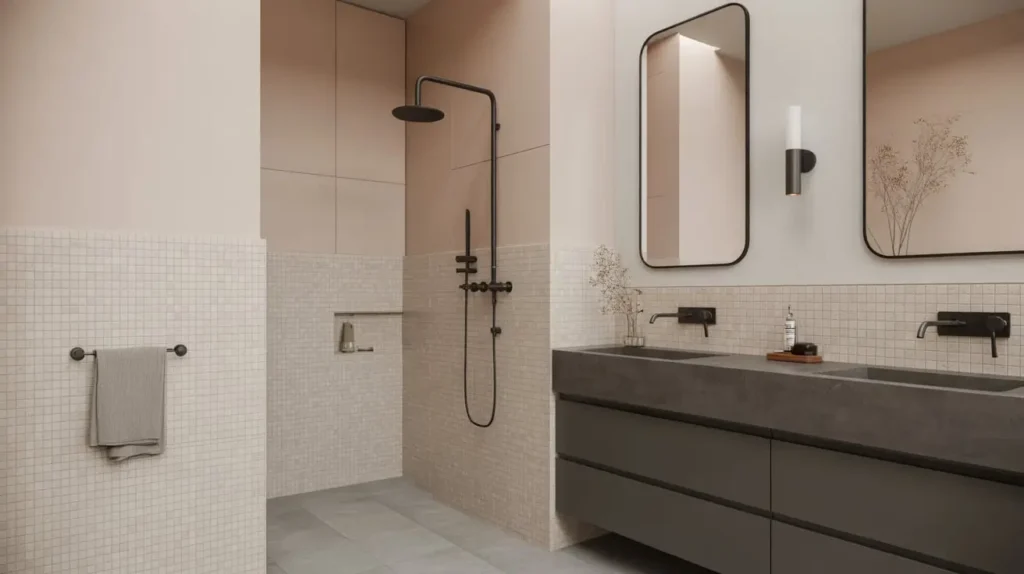 The ratio matters here, though. You want roughly 70% beige, 20% white, and 10% black to keep things balanced. Too much black, and your bathroom starts feeling dark and cramped. Get the ratio right, and you’ve created something magazine-worthy.