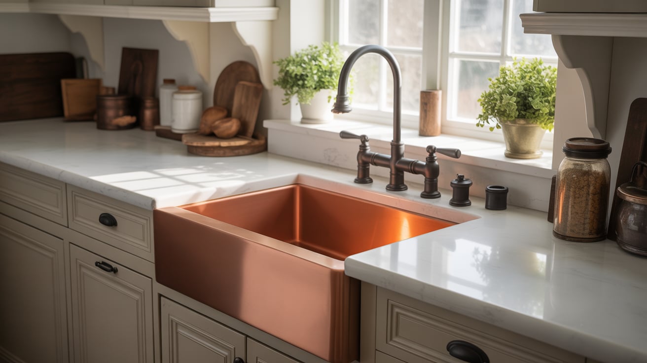 - Choose a farmhouse or under-mount copper sink