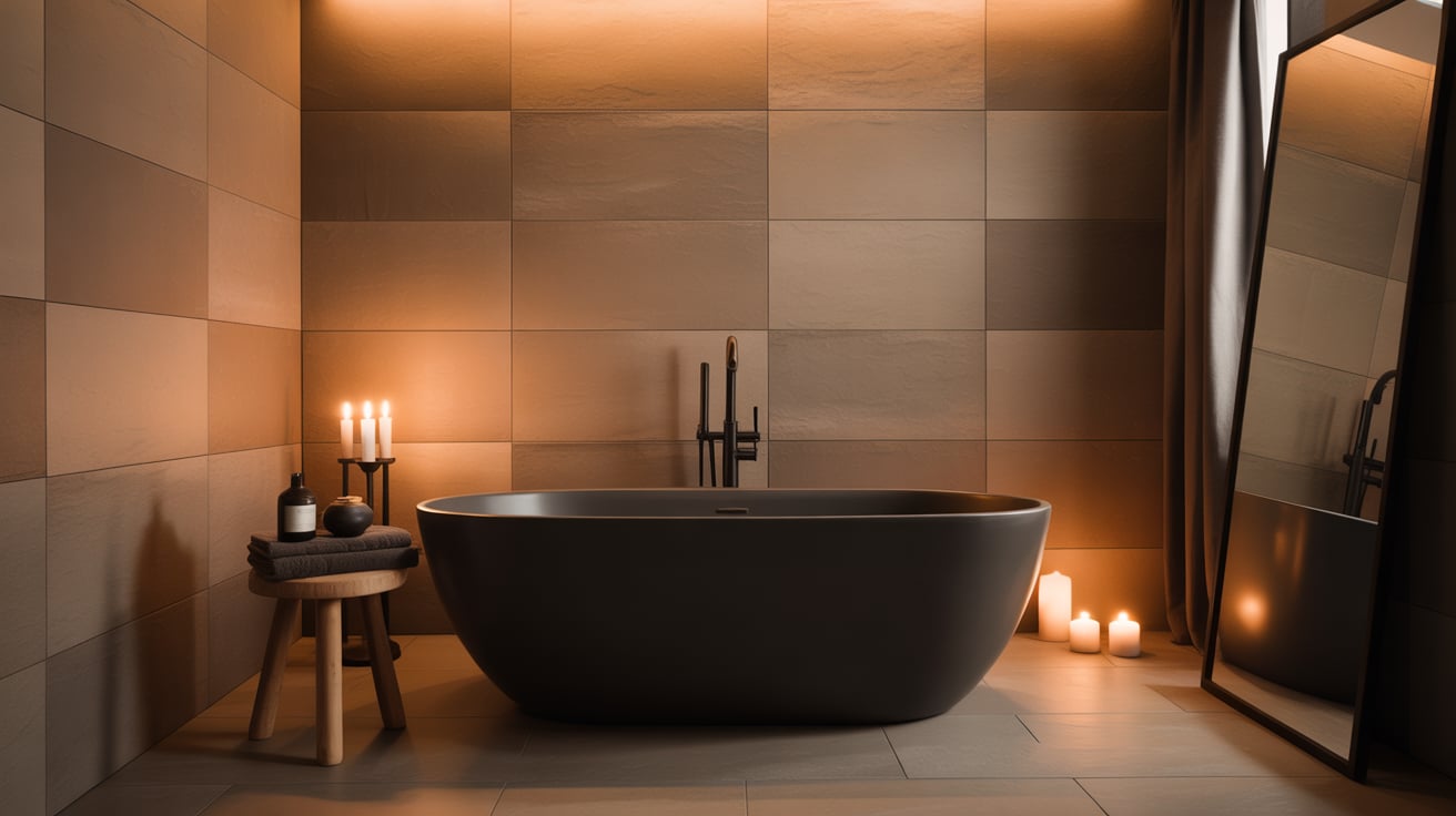 - Tan or beige wall tiles for softness