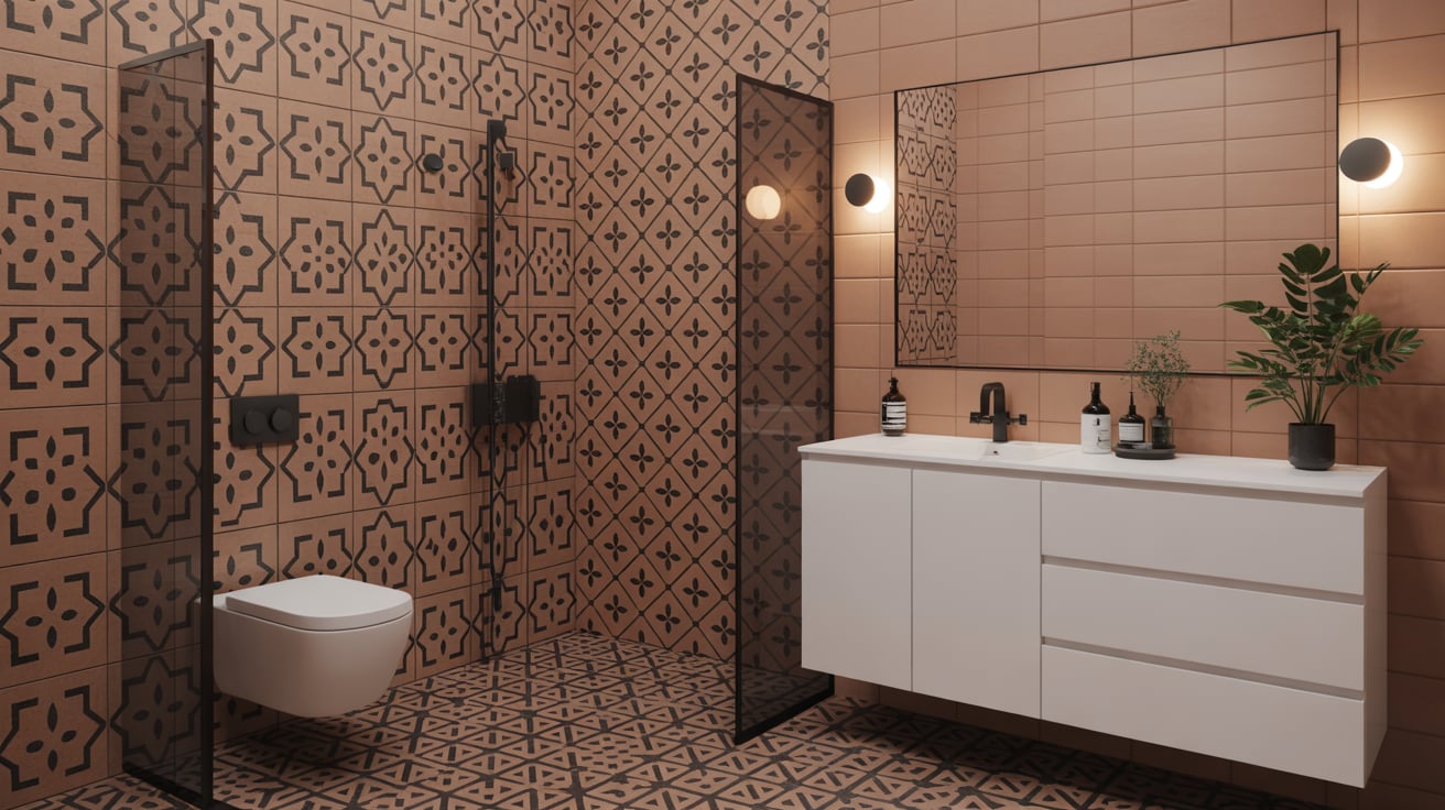 I experimented with patterned tiles once and loved the result. Black geometric patterns over tan tiles created a chic, dynamic space that felt both playful and sophisticated.