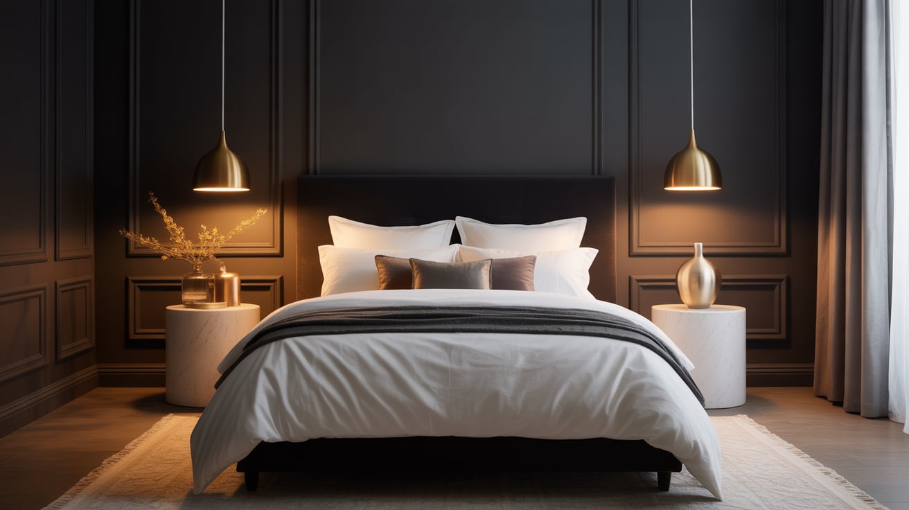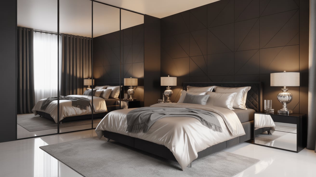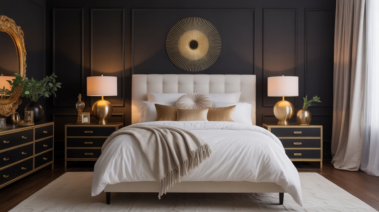 Balance the dark tone with light bedding, mirrored decor, or metallic accents. This idea turns a simple room into a designer-inspired retreat.
