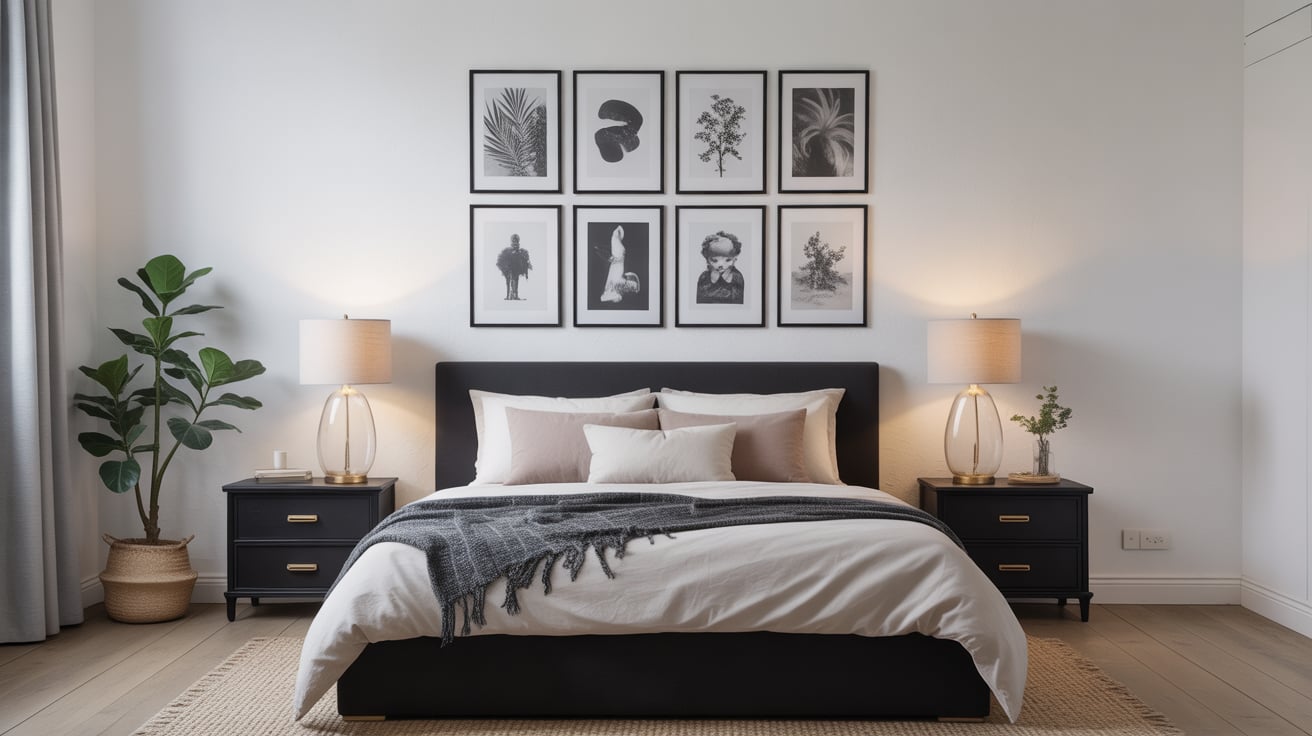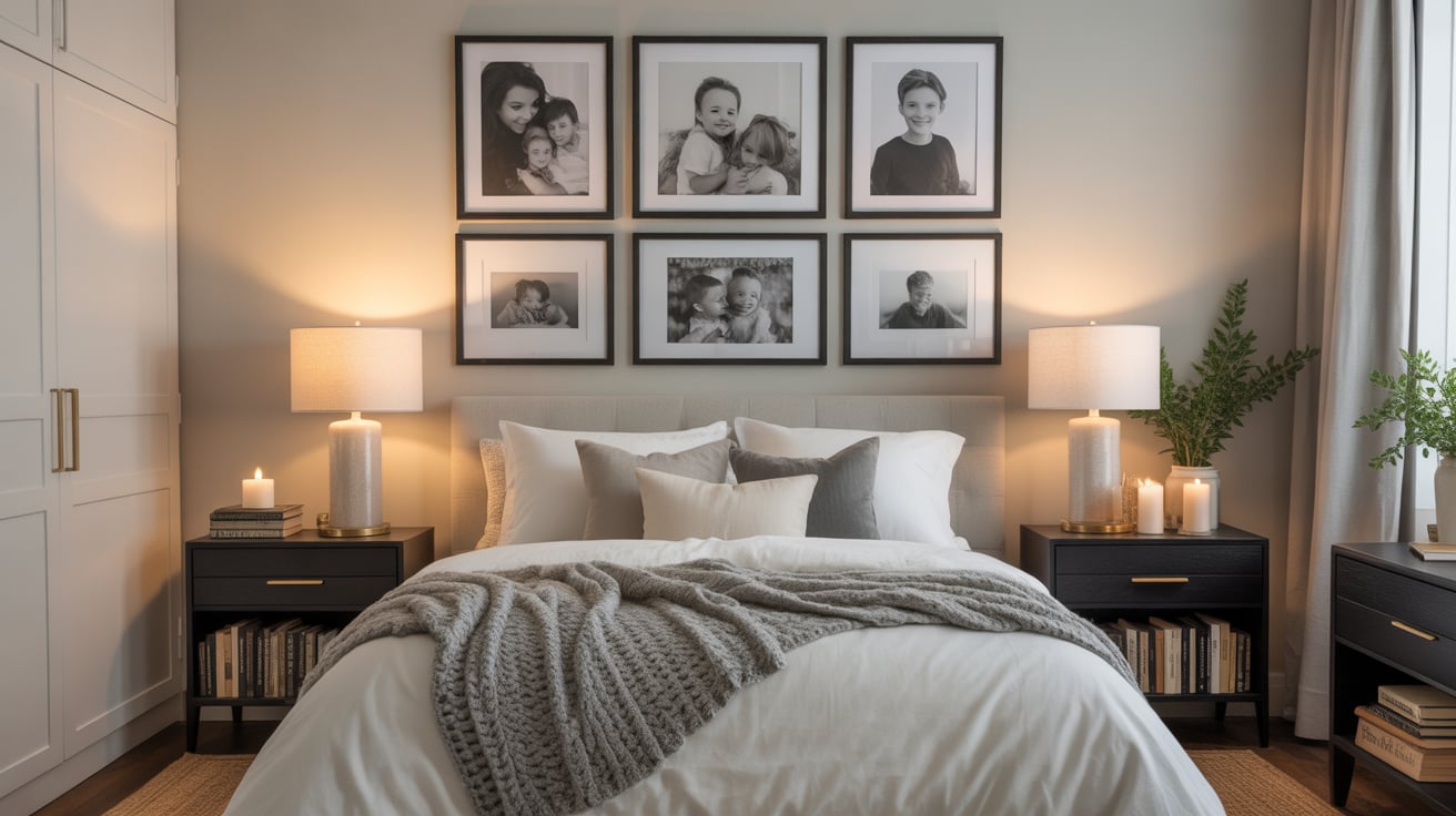 Finally, make your black and white bedroom feel like you. Display personal items like framed photos, candles, or books in matching tones. Little details make the space inviting and emotionally warm.