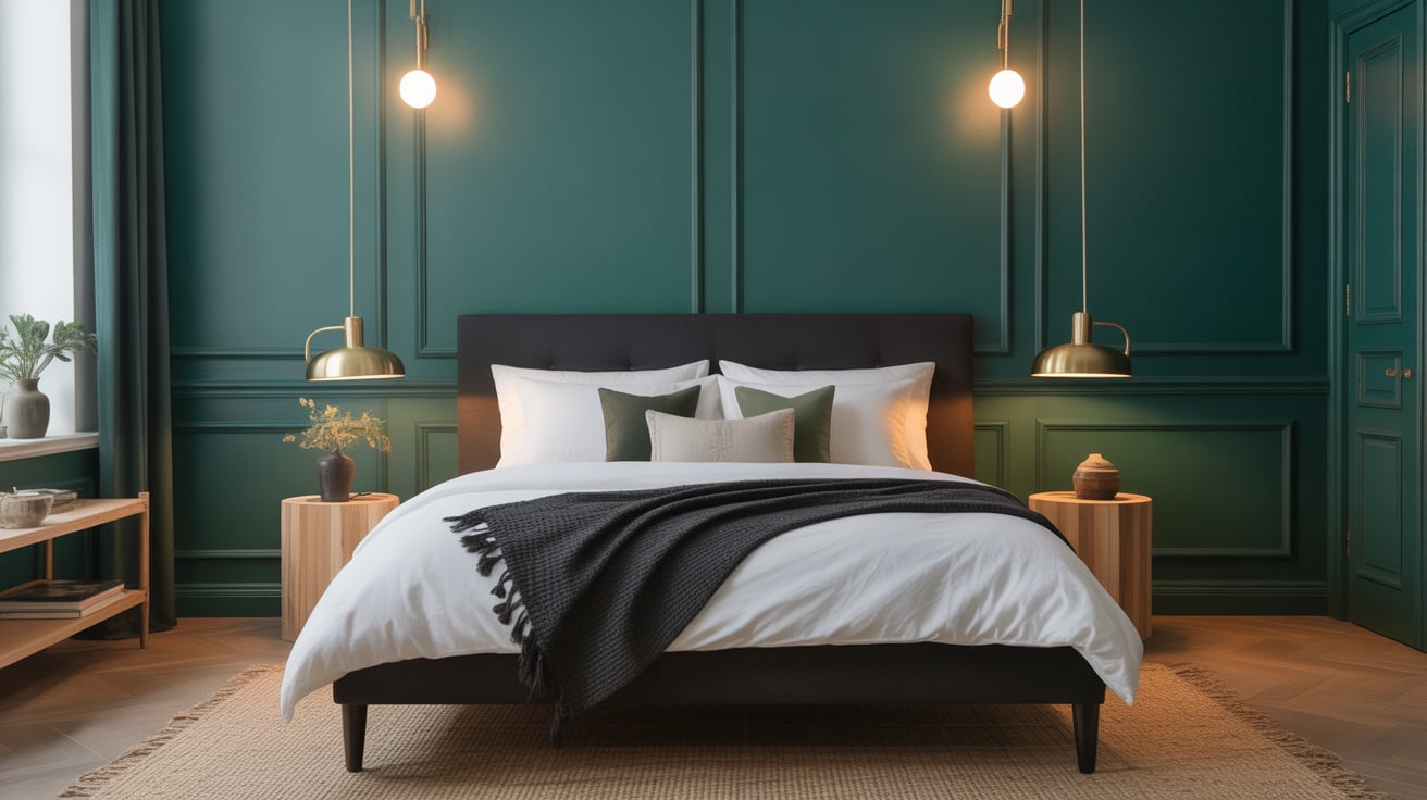Keep the other walls light to balance the look. Add metallic or white decor for contrast, and your bedroom will feel bold yet balanced.