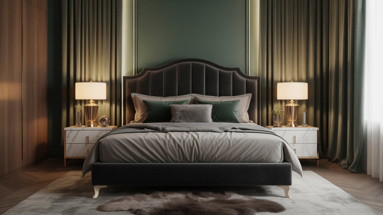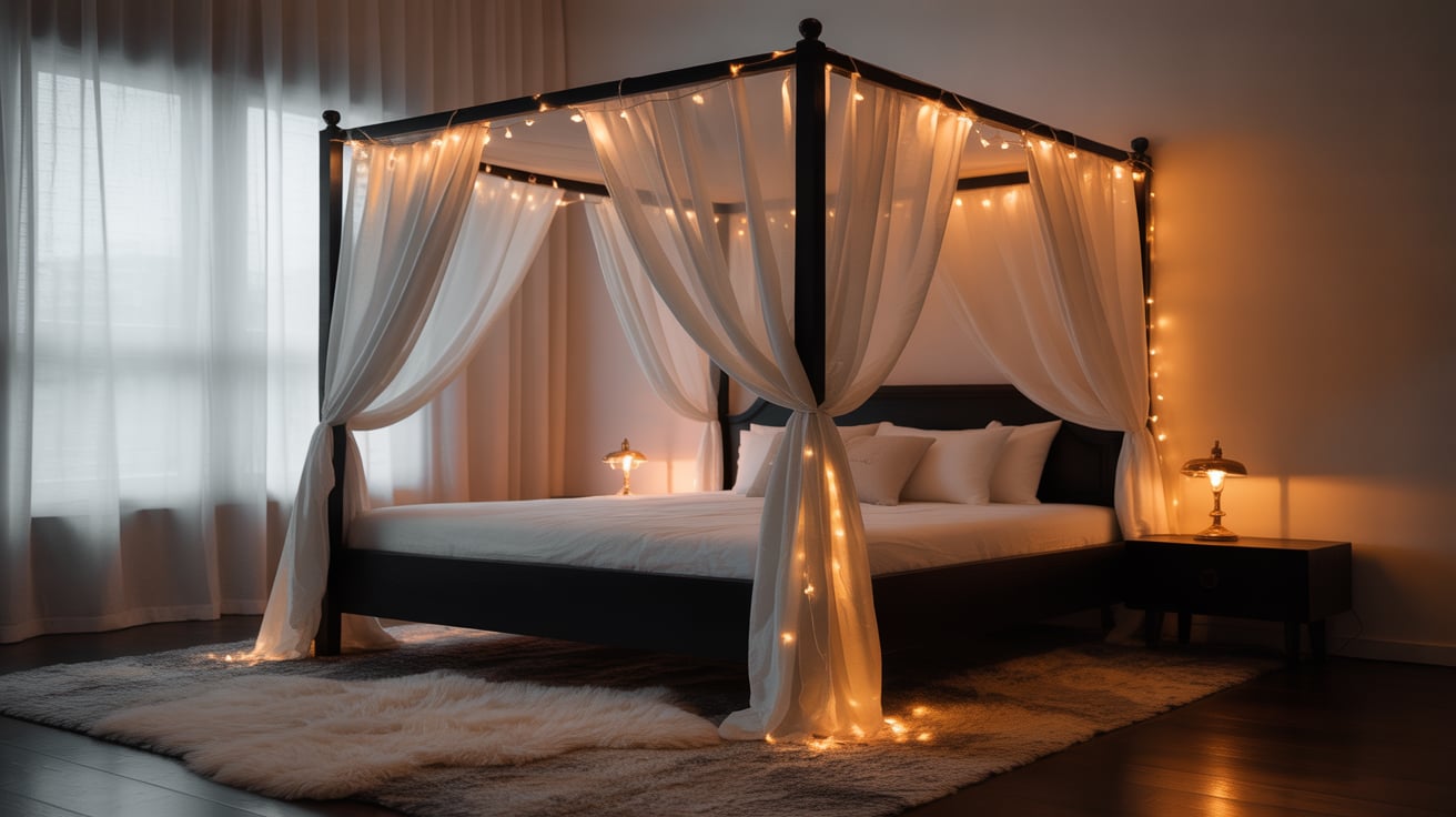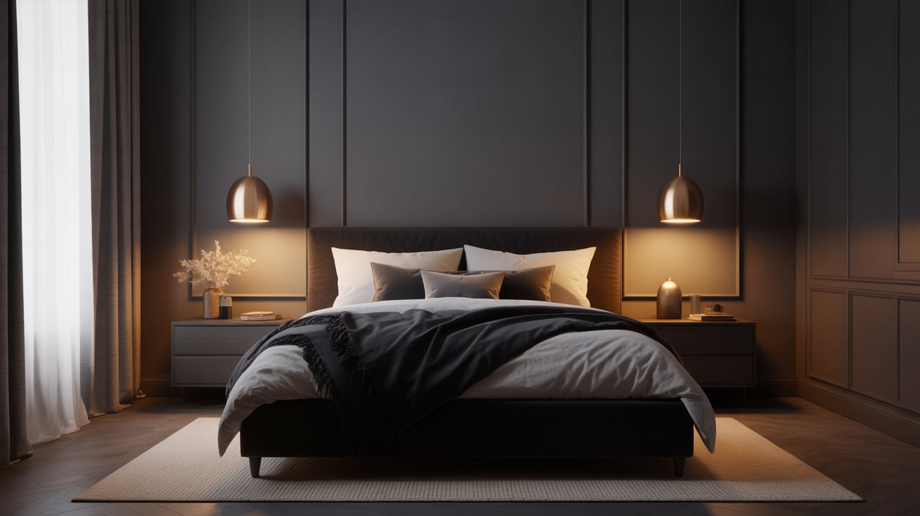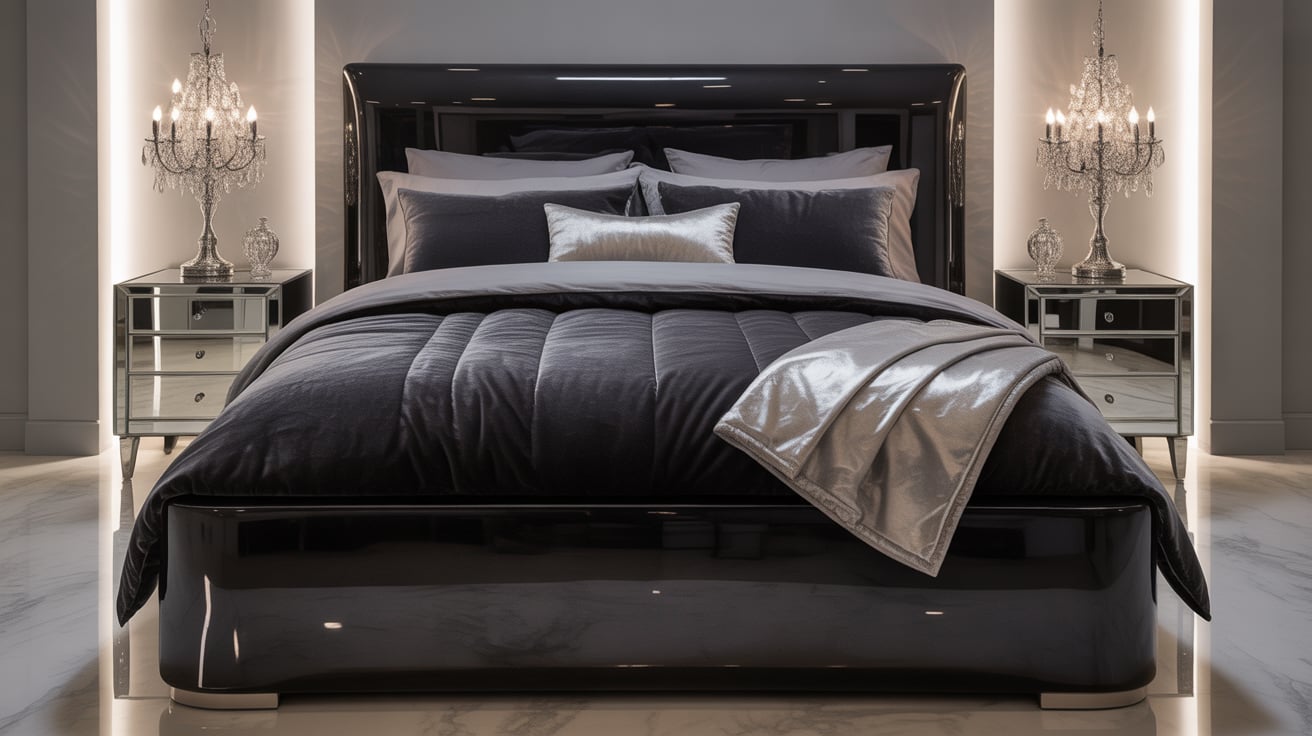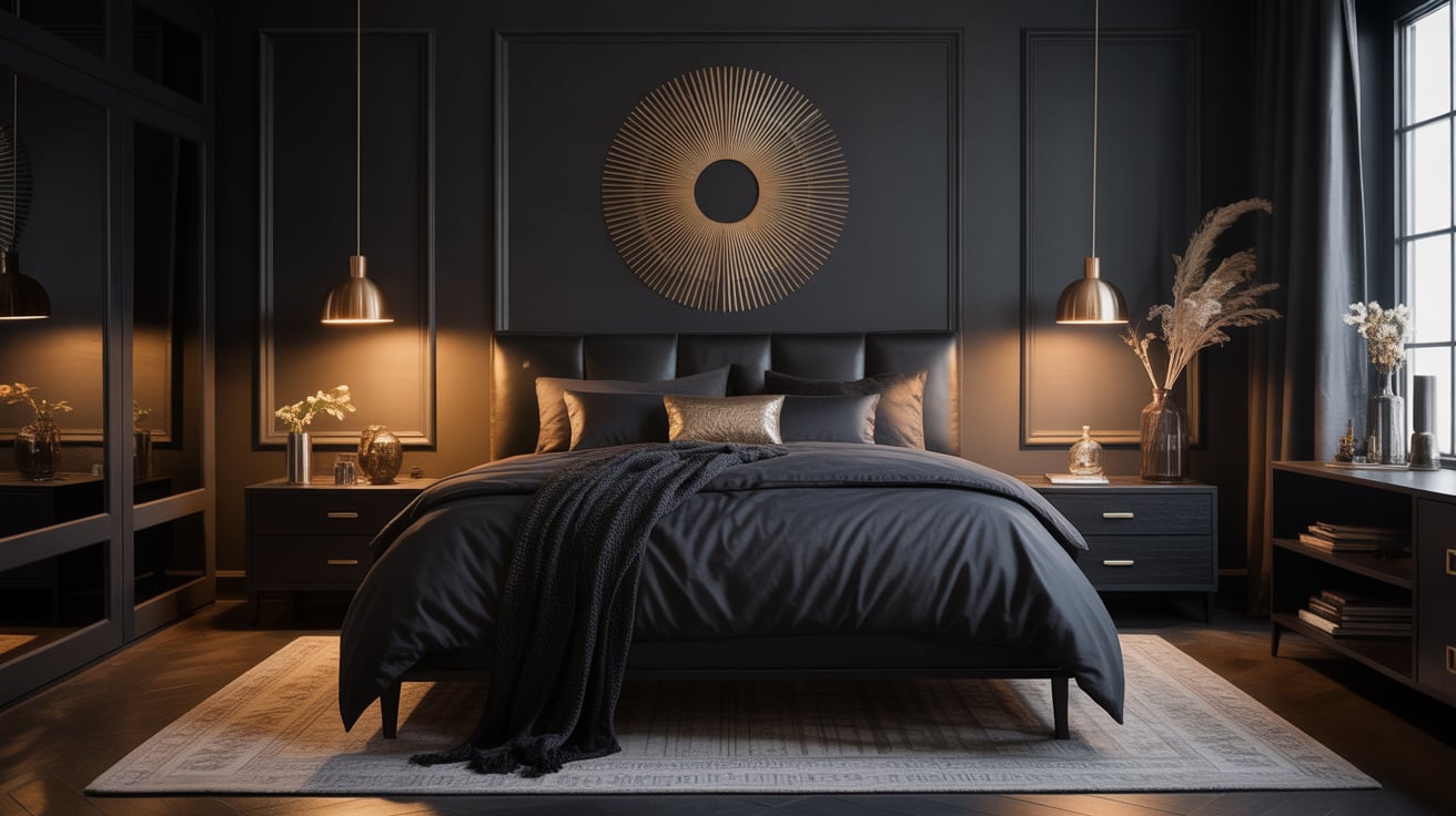 Lighting can make or break your black bed design. Use layered lighting — overhead pendants, wall sconces, and bedside lamps — to highlight your furniture.