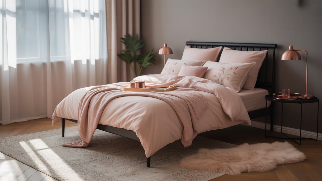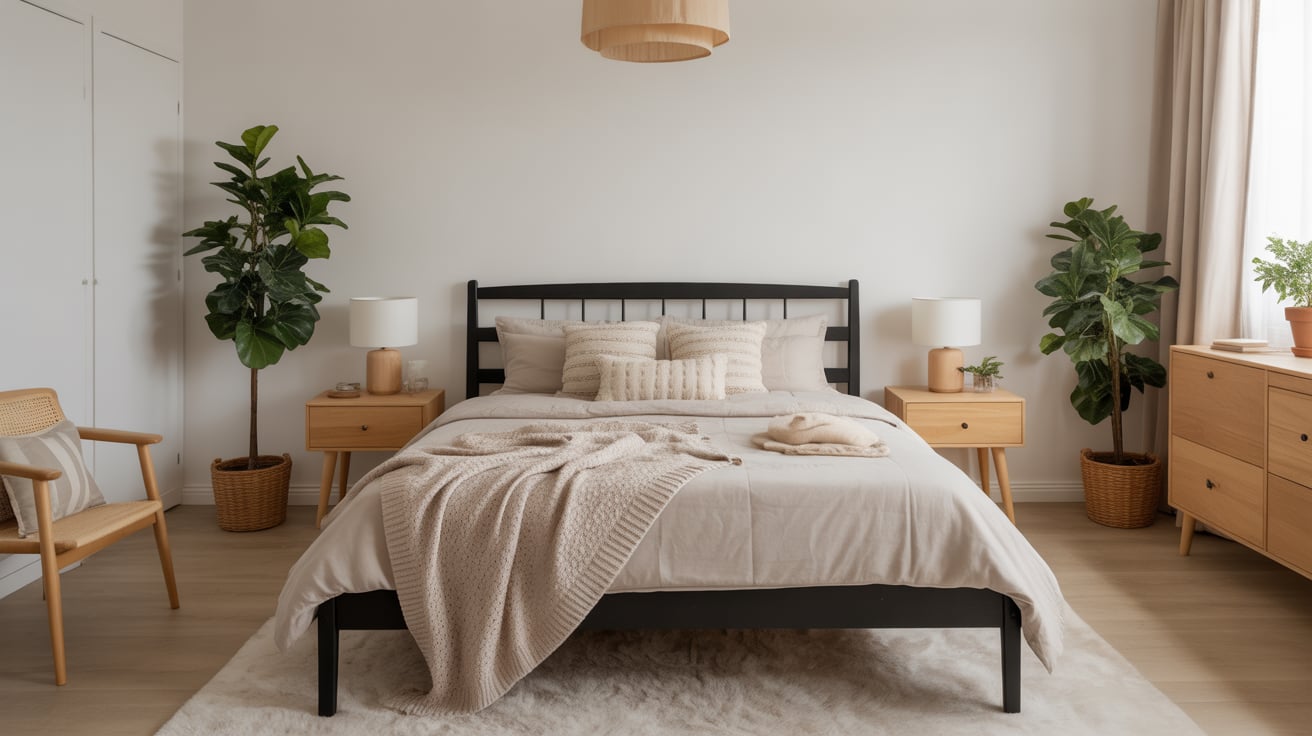 Choose shades that complement your black bed frame without blending in completely. It’s the easiest way to ground your space while adding comfort and style.