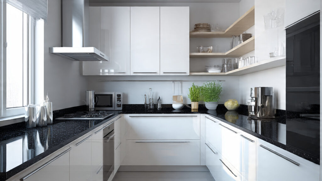 I once renovated a tiny studio and paired black granite with white cabinets — the contrast instantly made the space feel clean and stylish. Even with limited square footage, it looked polished and organized.