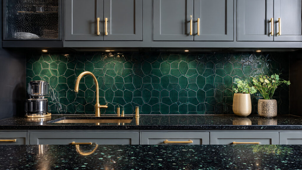 I tried a dark granite countertop with a deep green tile backsplash, and it completely changed my kitchen’s personality. At first, I worried about darkness, but it created a dramatic, yet balanced look.
