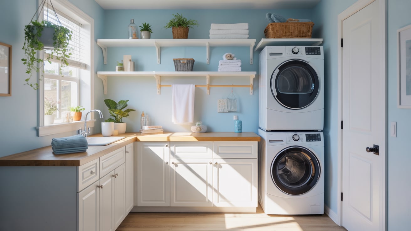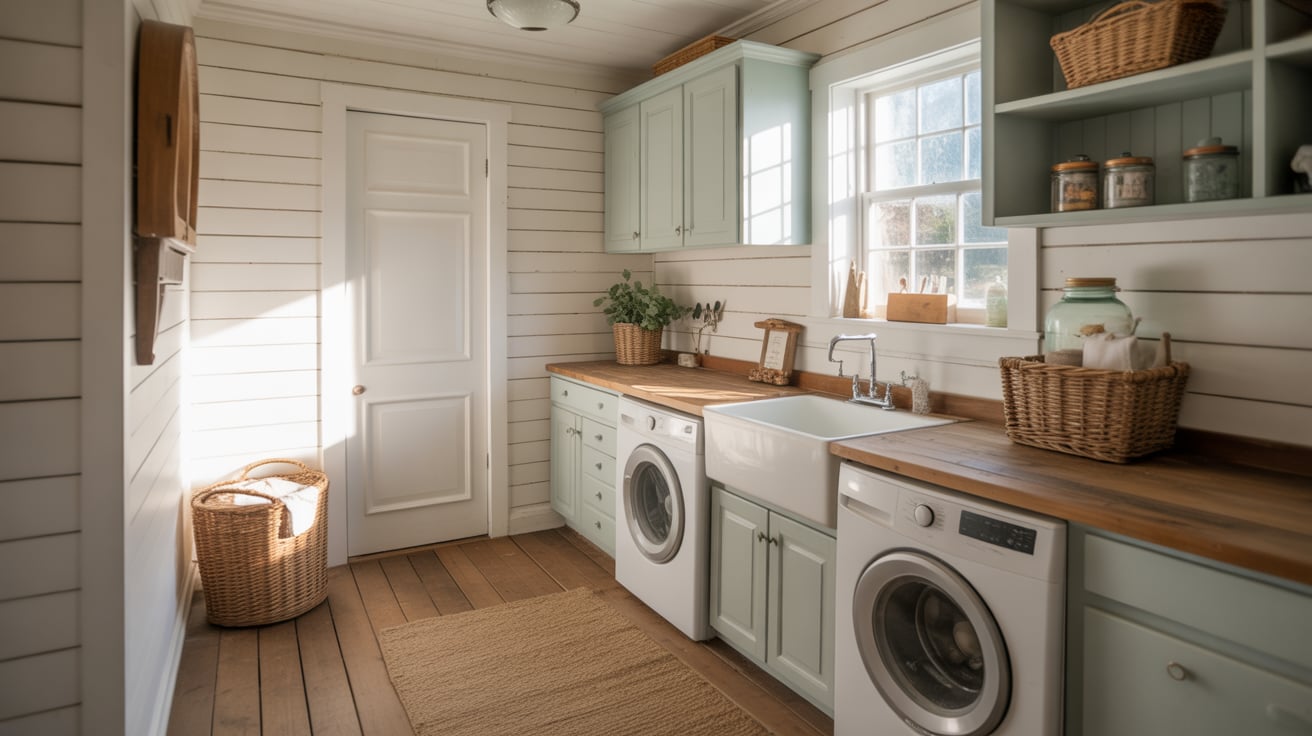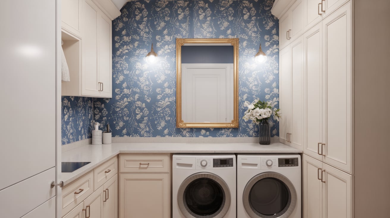 I once helped my sister design her tiny laundry nook using a two-tone color scheme — light blue on top, navy on bottom. It gave the illusion of higher ceilings and added instant character.