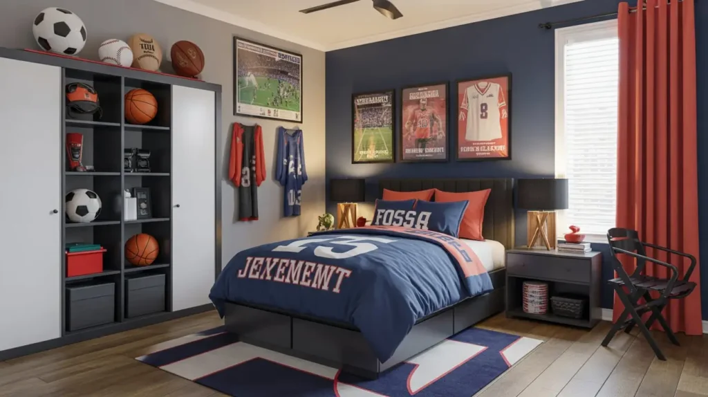 I recommend keeping the base neutral and adding sports elements through easily changeable accessories. Paint the walls in team colors or stick with classic combinations like navy and white, which work for almost any sport. You avoid a complete redesign when their interests shift from basketball to soccer.