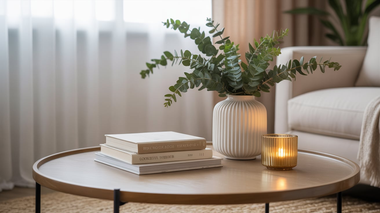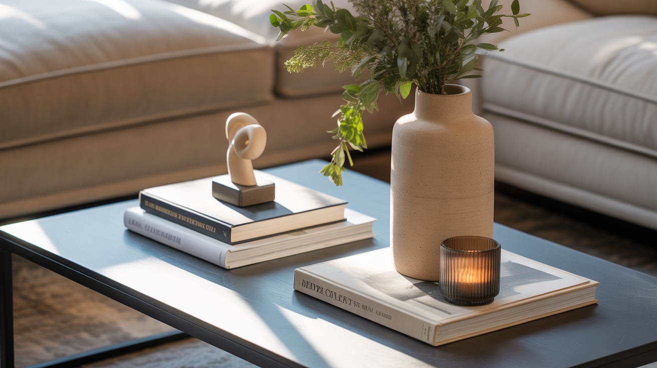 When I moved into my first apartment, my coffee table looked empty no matter what I placed on it. One day, I stacked a few of my favorite design books and topped them with a single ceramic vase filled with fresh eucalyptus. Suddenly, it felt like my space had personality — calm, modern, and put-together.