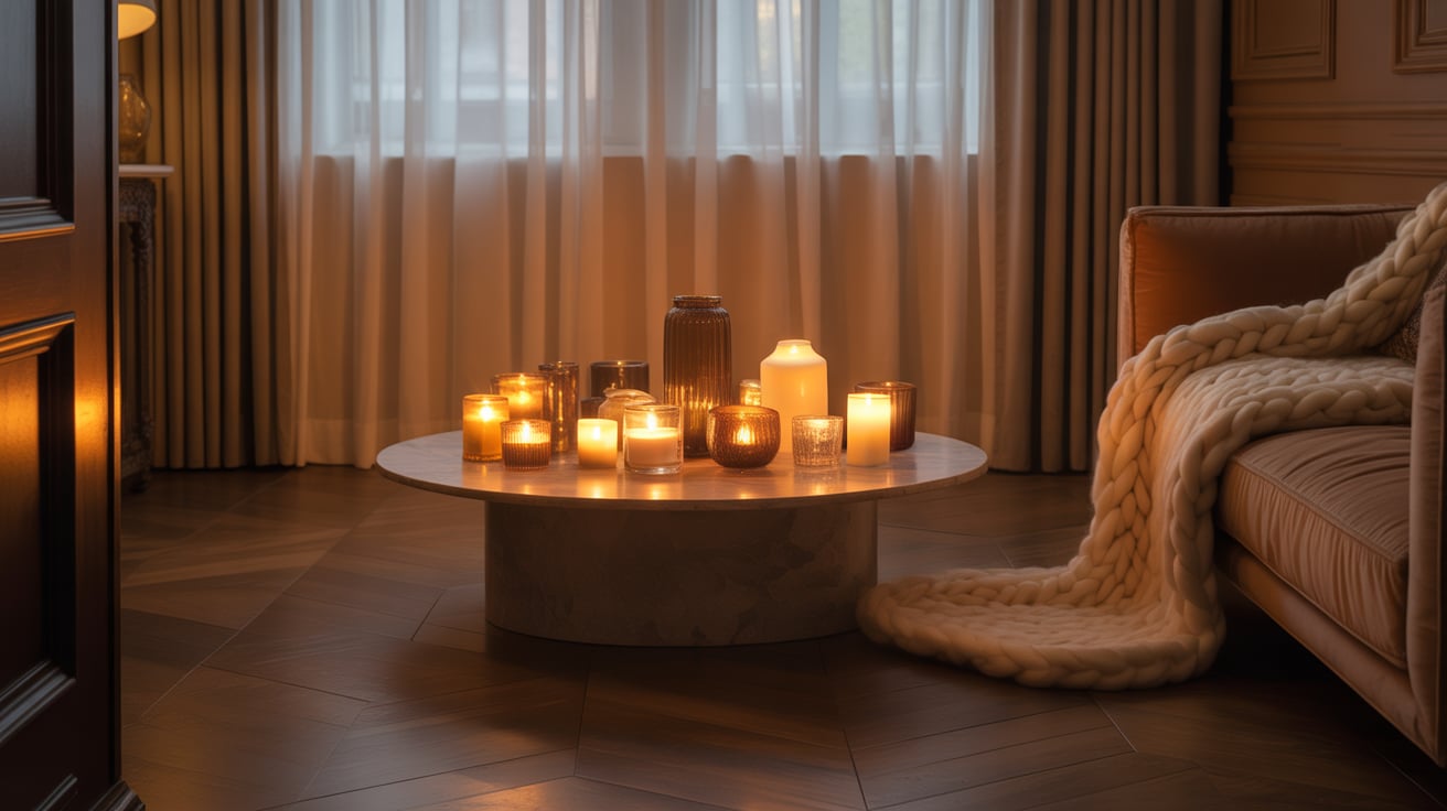 On rainy nights, I love lighting a few candles and watching their soft glow bounce off the walls. One evening, I placed a few different candle heights on my coffee table, and it instantly transformed the mood — cozy, romantic, and inviting.