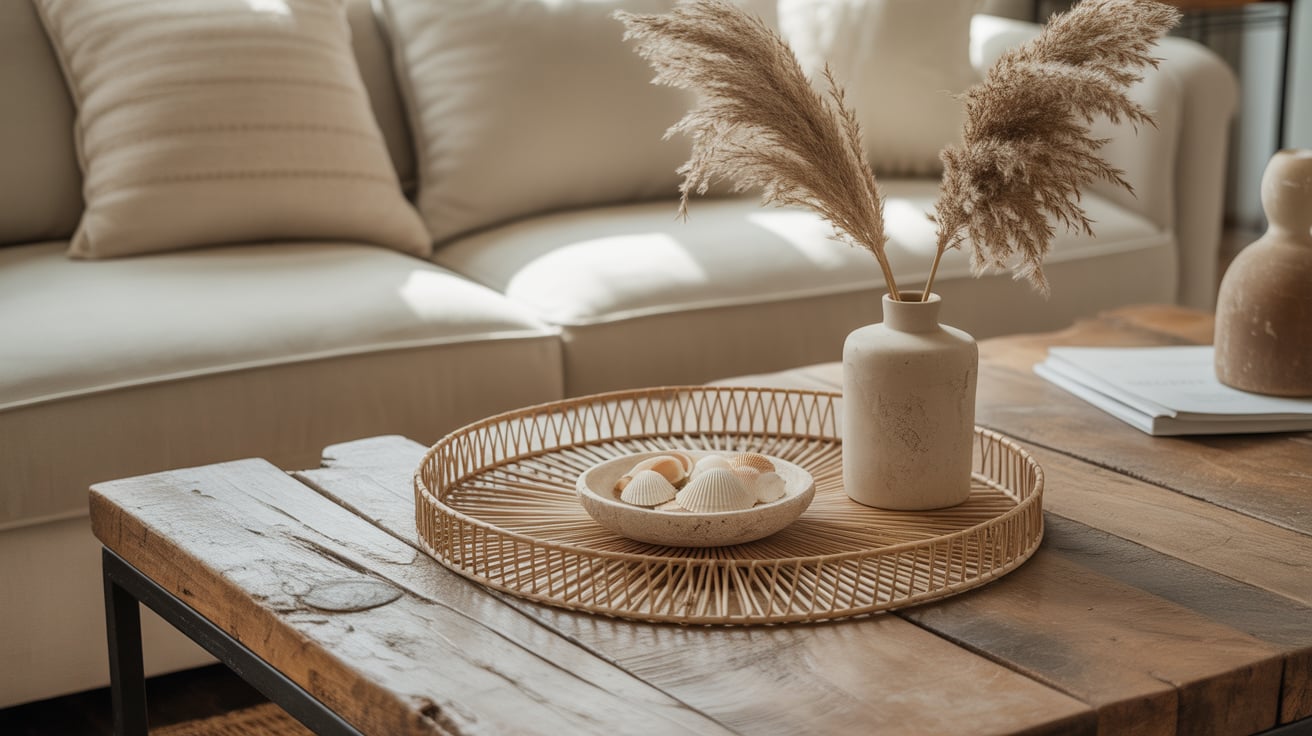 When I brought home a small wooden bowl filled with shells from my beach trip, my coffee table suddenly felt like a story. Natural elements — wood, stone, seashells, or woven baskets — add organic warmth and depth.