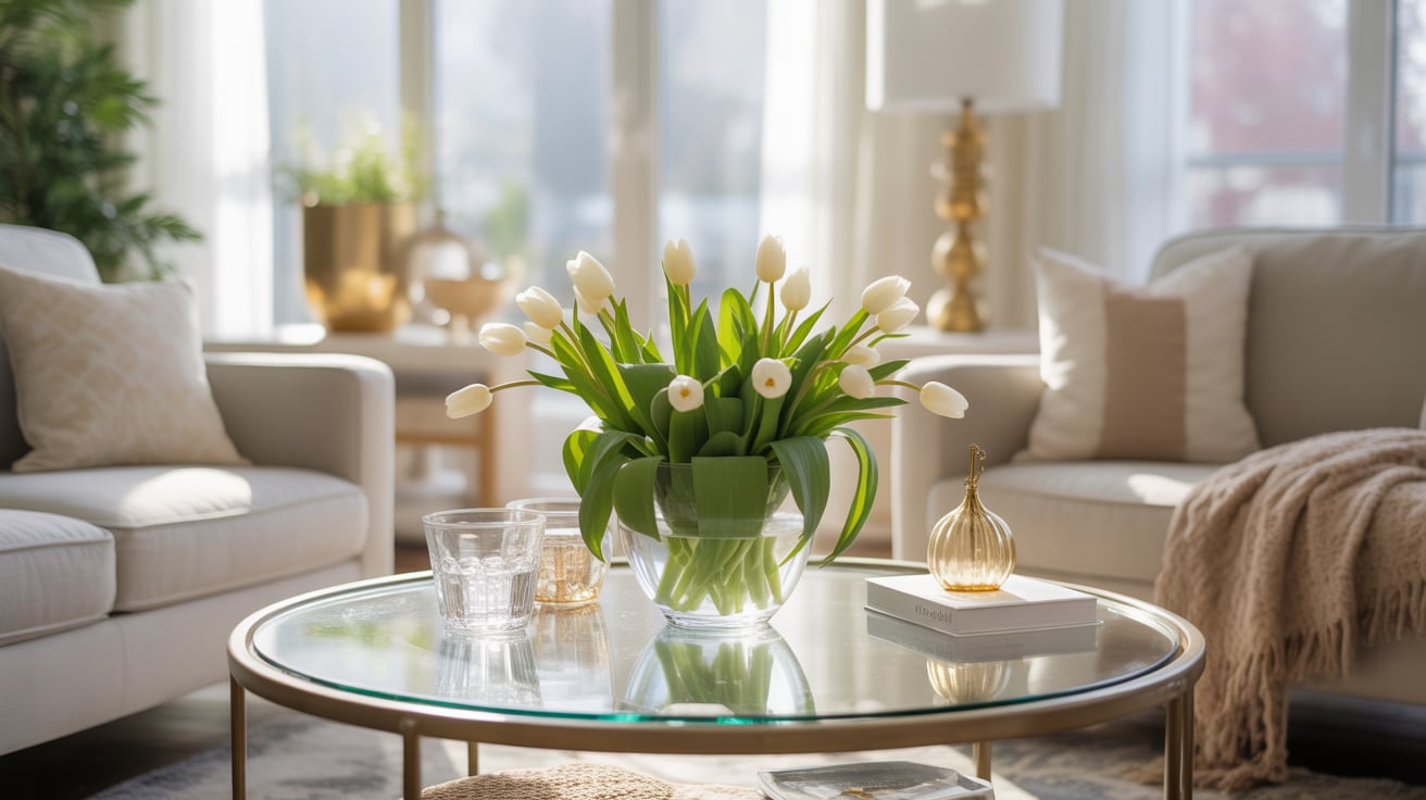 I remember visiting a friend’s home where her coffee table had nothing but a vase of white tulips. It was so simple, yet the entire room felt welcoming and alive. That’s when I realized — fresh flowers never fail to uplift a space.