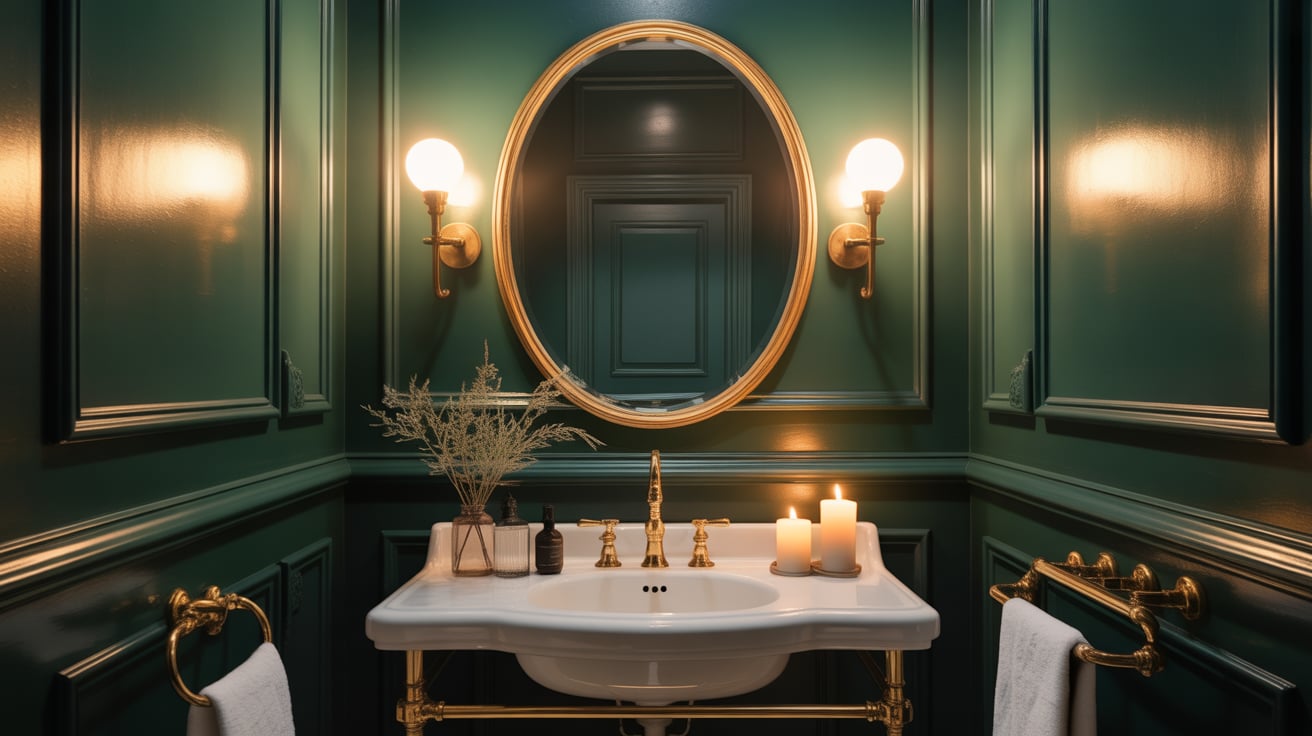 A client once told me her secret to making her dark bathroom glow: brass everything. Mirrors, faucets, even towel hooks — the metallic warmth balanced her deep green walls perfectly.