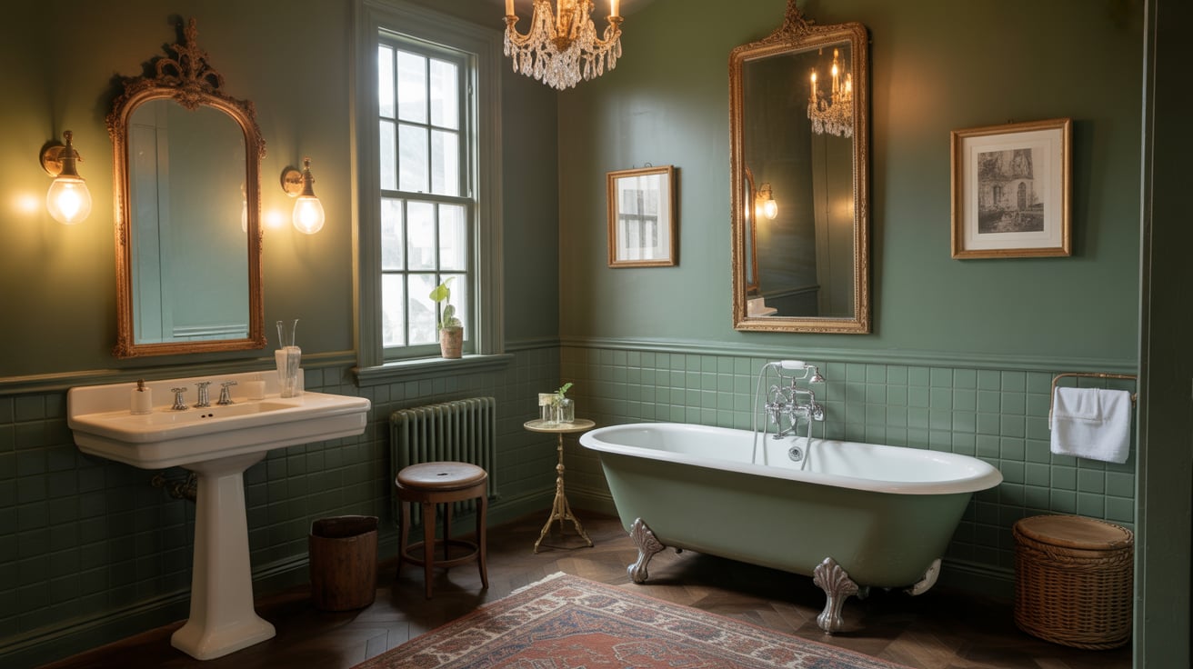 During a design project, a client insisted on painting her old clawfoot tub dark green — and it became the star of the room. Paired with brass feet, it looked straight out of a luxury catalog.
