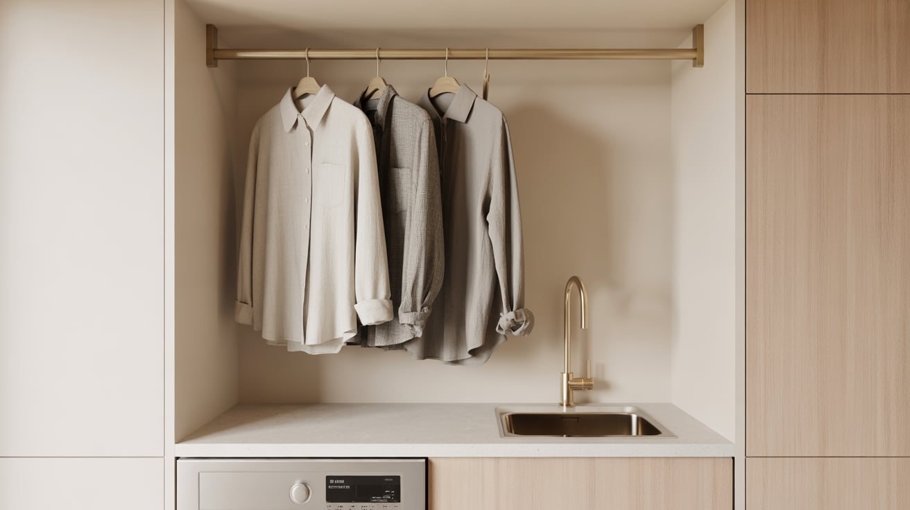 There was a time when I draped clothes over every chair after washing. Installing a wooden rod between two shelves was such a simple fix — now drying delicates is easy and looks tidy.
