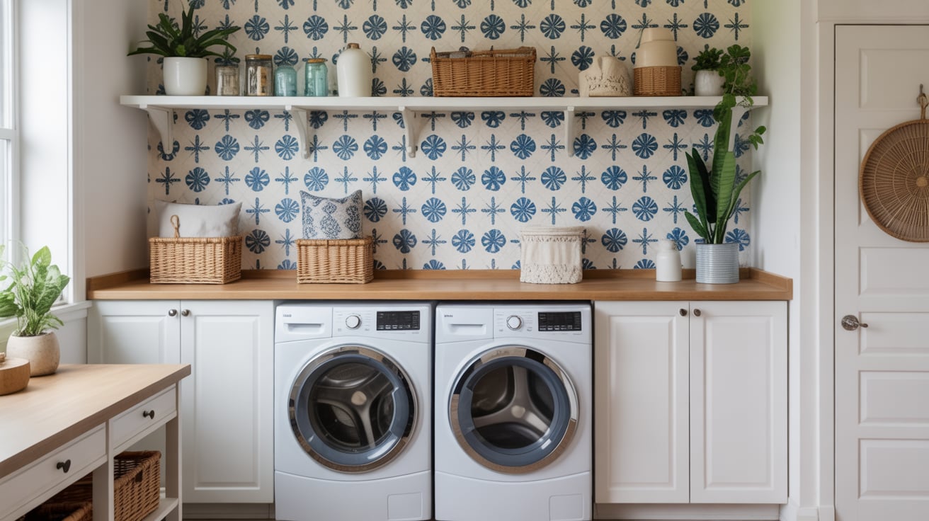 I once tried a floral peel-and-stick wallpaper behind my washer, and it completely changed the vibe — suddenly my laundry nook felt like a boutique!