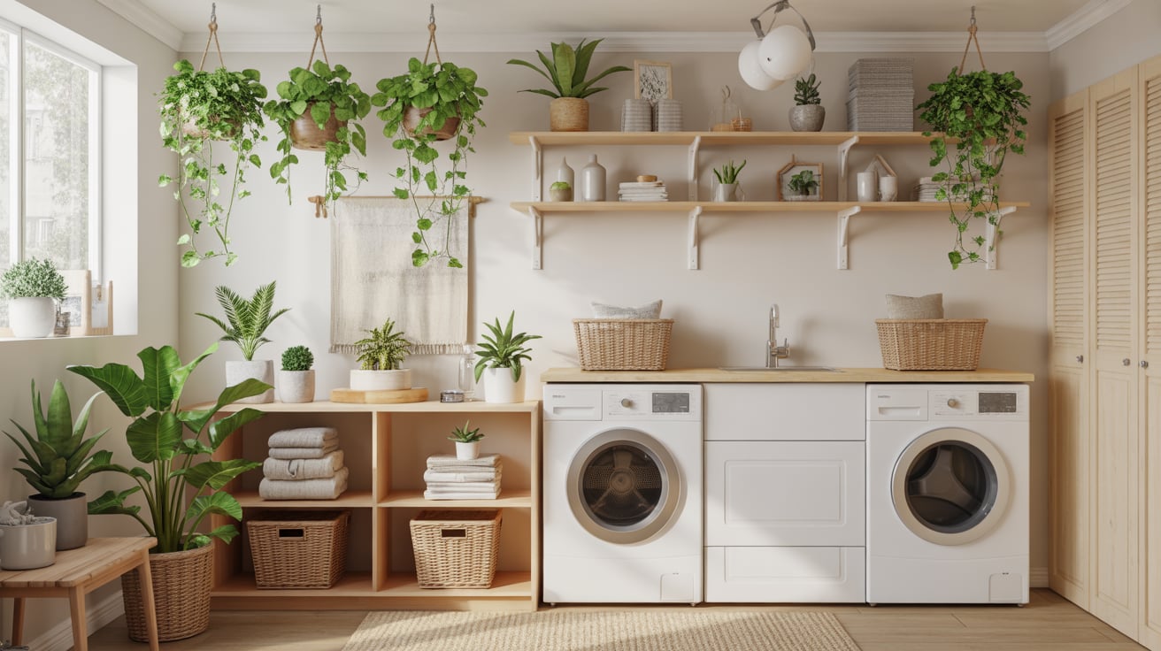 Greenery makes the laundry room feel alive and relaxing. Go for low-maintenance plants that love humidity.
