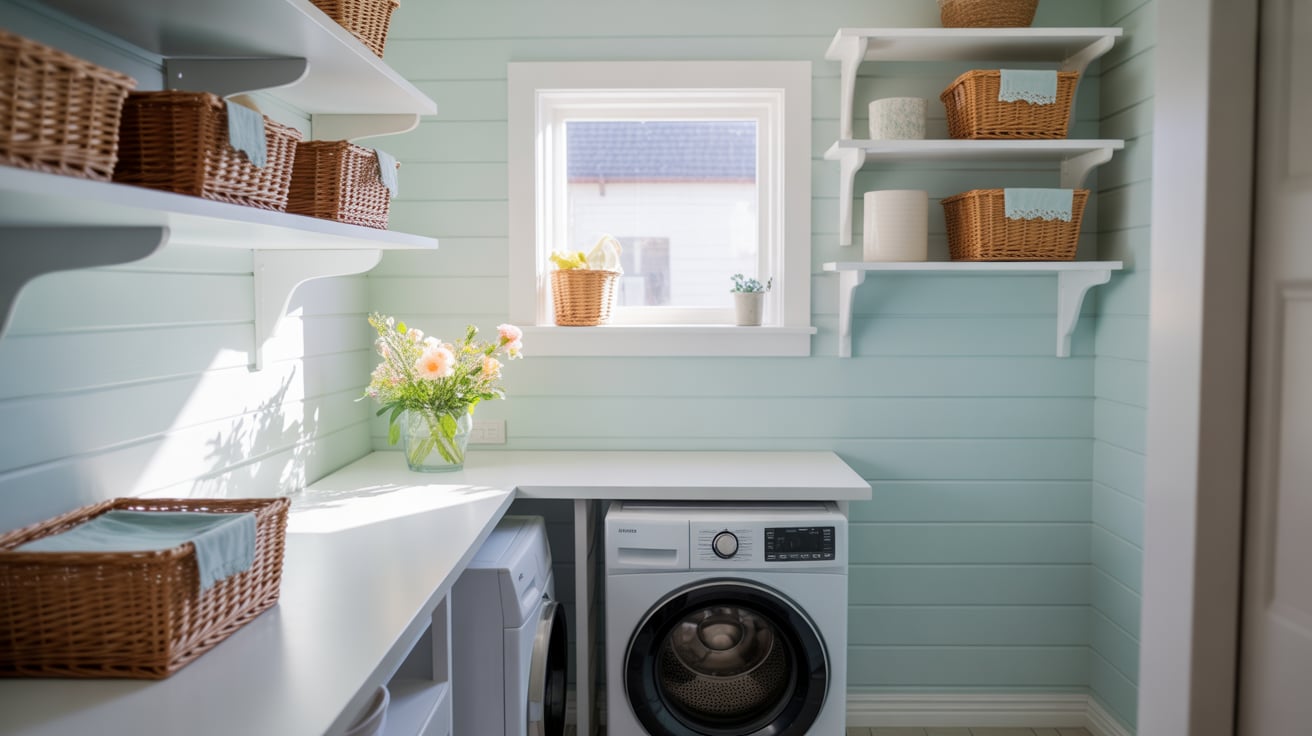 When I first painted my old beige laundry room a soft sky blue, it completely changed my mood. Suddenly, doing laundry didn’t feel like a boring task — it felt calm and refreshing, like a mini escape in the middle of my day.
