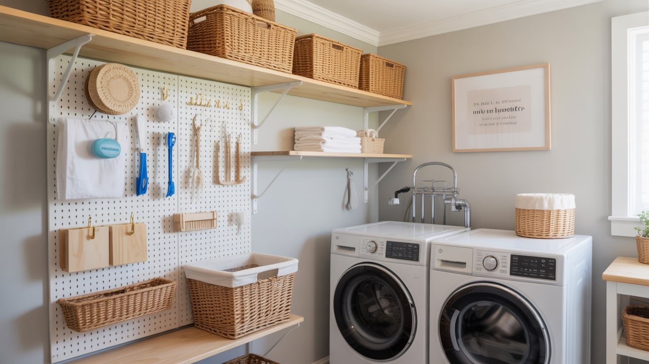 Pegboards are perfect for hanging cleaning tools, baskets, and even decor — everything stays visible and organized.