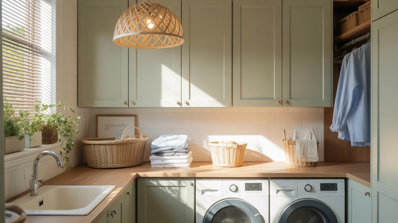 For years, my laundry room had one sad, buzzing light bulb. When I finally replaced it with a rattan pendant, everything changed — the space felt cozy, bright, and designed with intention.