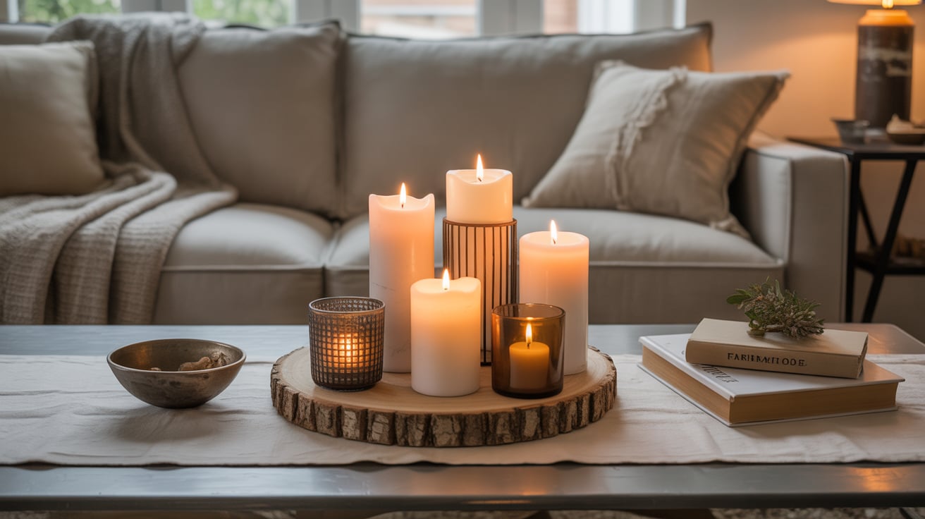 Candle clusters work because they create a warm, inviting atmosphere instantly. Grouping candles of different heights makes the table look dynamic yet intentional. Using farmhouse-style holders like wood or metal keeps it rustic and stylish.