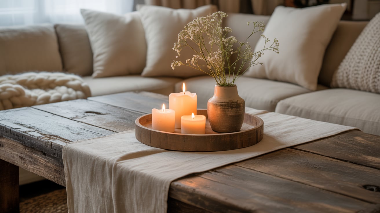 Living in a cozy apartment, I realized that layering a soft linen runner over my coffee table instantly made it look styled and complete. It added depth and a subtle farmhouse charm.