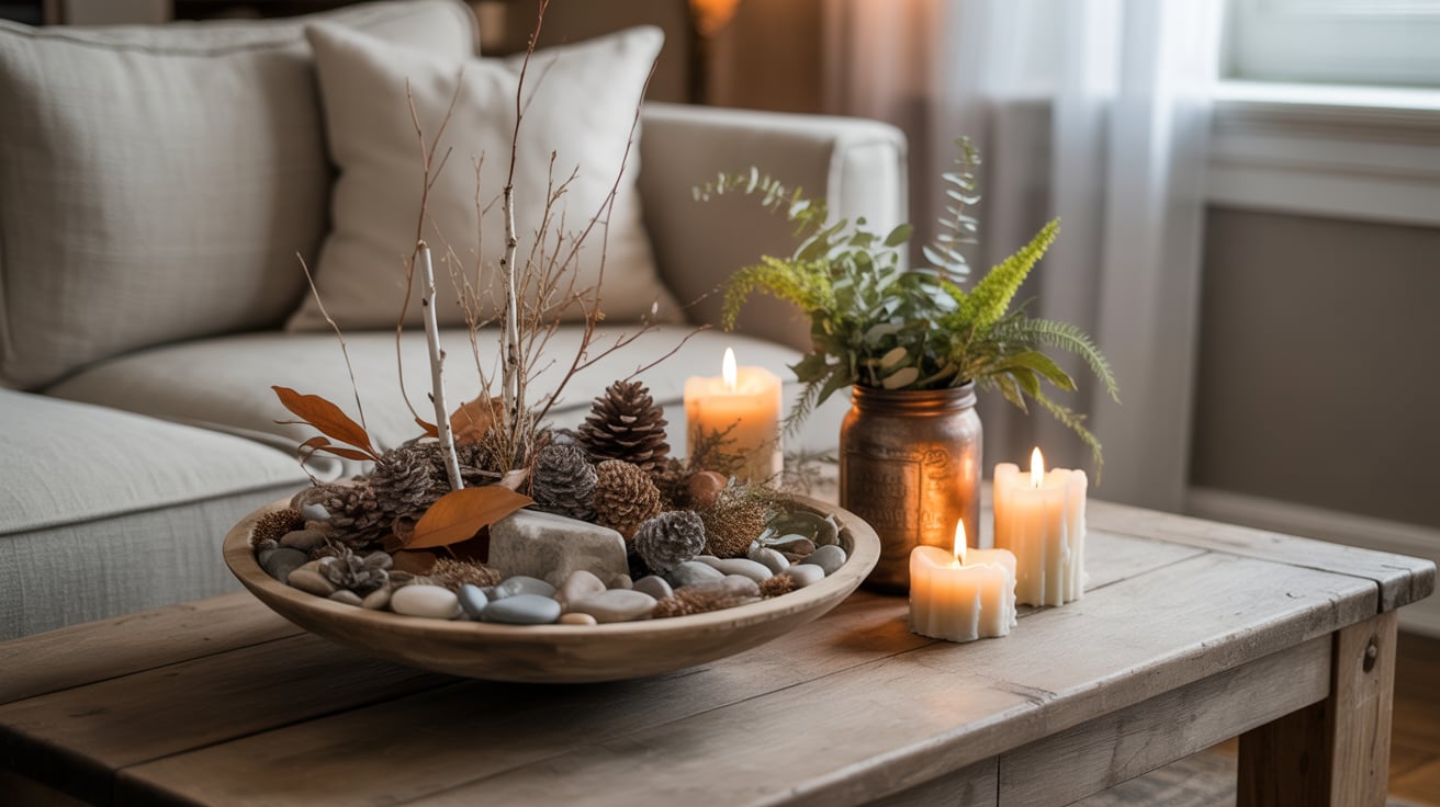 During a weekend getaway, I picked up small pinecones and twigs and placed them in a bowl on my coffee table. The natural touch made my living room feel like a cabin retreat!