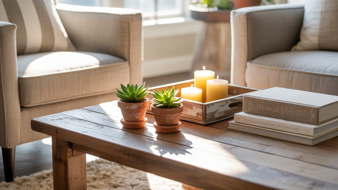 I remember visiting a friend’s home, and her coffee table instantly caught my eye. She had this simple wooden tray filled with candles, a small vase, and a couple of decorative books. It felt cozy and inviting — like the table was telling a story.