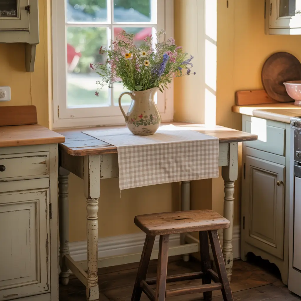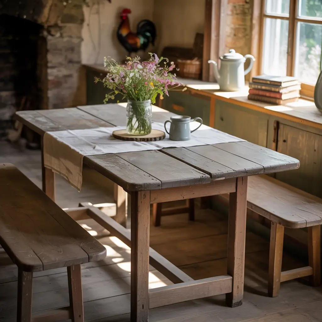 Look for drop-leaf farmhouse tables that expand when company arrives and collapse when it’s just you eating cereal over the sink (we’ve all been there). Square tables in the 36-48 inch range give you farmhouse charm without dominating the room. I’ve also seen gorgeous narrow rectangular tables—like 24 inches wide—that tuck against walls but still seat four comfortably.