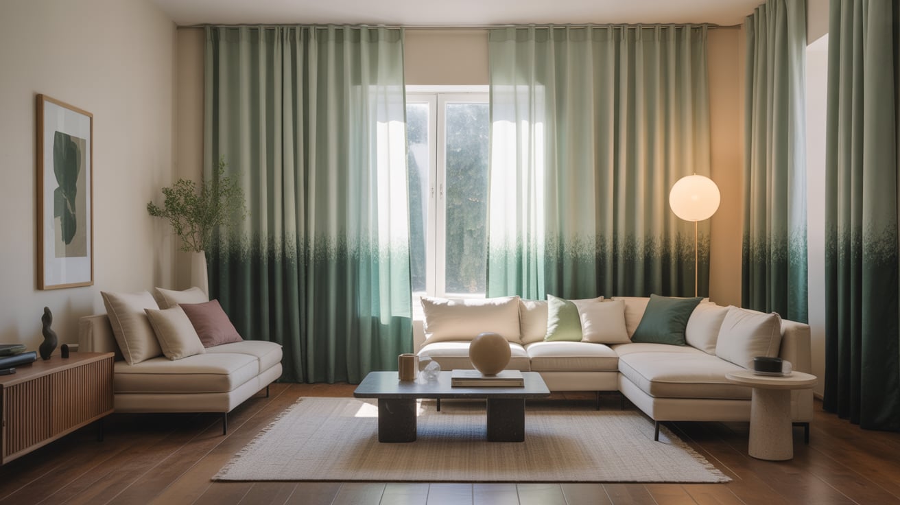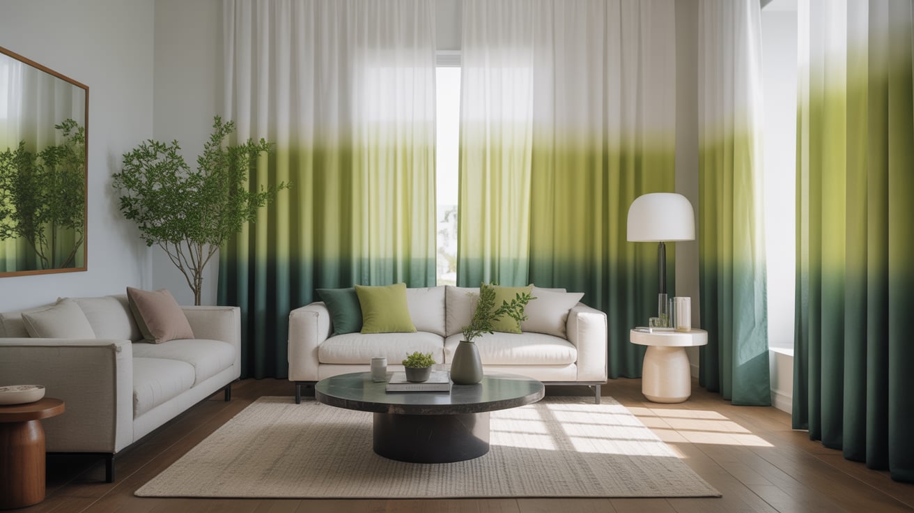 I stumbled upon a living room with green ombre curtains, and I was amazed at the subtle depth they created. It added a modern and artistic vibe without overwhelming the space.