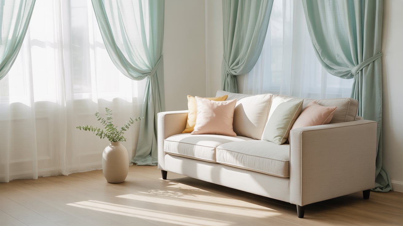 Light green works in small spaces because it adds color without making the room feel dark. Opt for sheer or lightweight fabrics to maintain brightness.