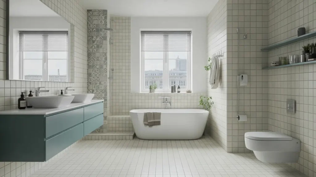 You can play with this combination in countless ways. I’ve seen people use white subway tiles on the walls with grey hexagon tiles on the floor, and honestly? Chef’s kiss. The contrast creates visual interest without overwhelming the space.