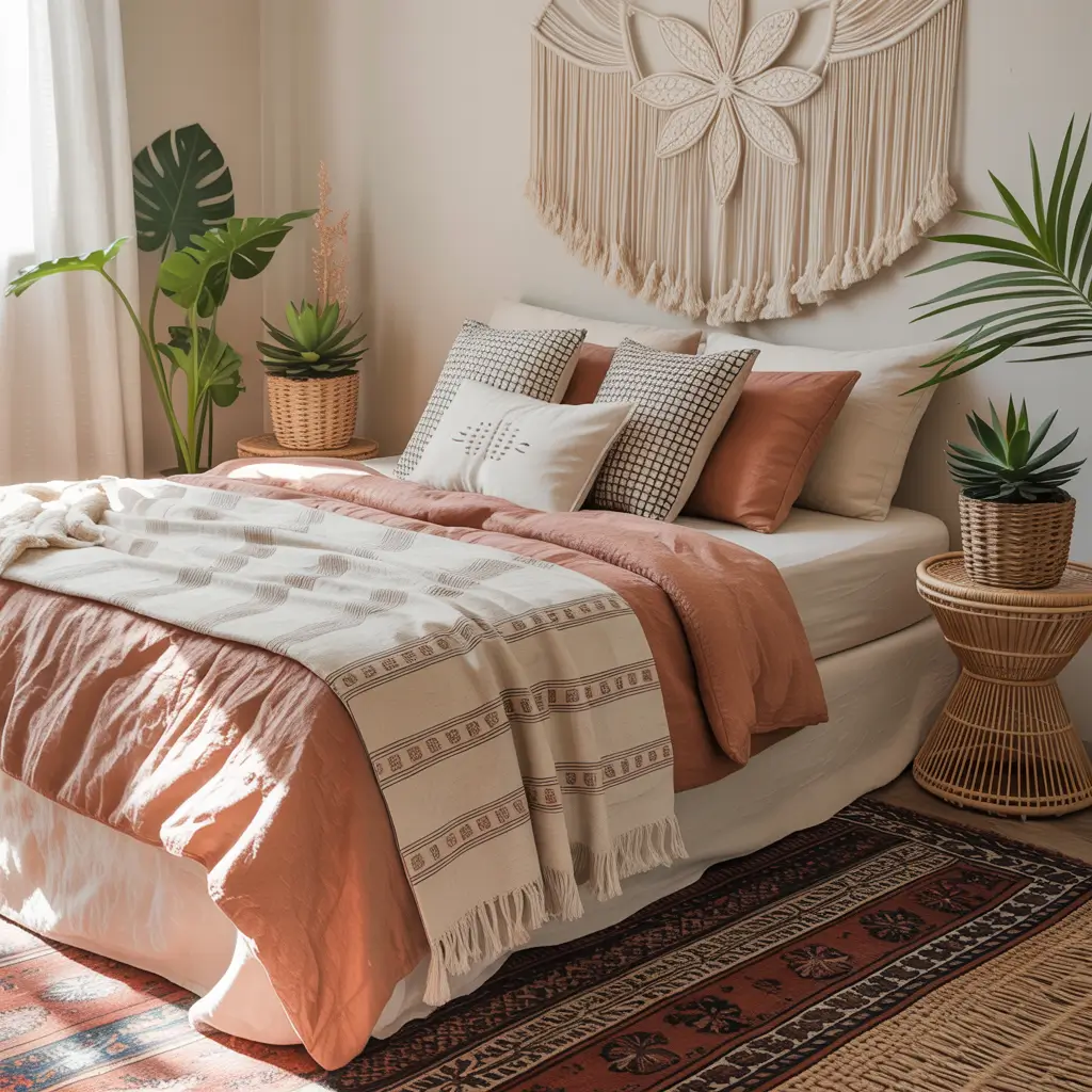 I went full boho in my guest room after a trip to Morocco, and I haven’t looked back. The freedom to mix patterns and textures without following strict rules? Chef’s kiss.