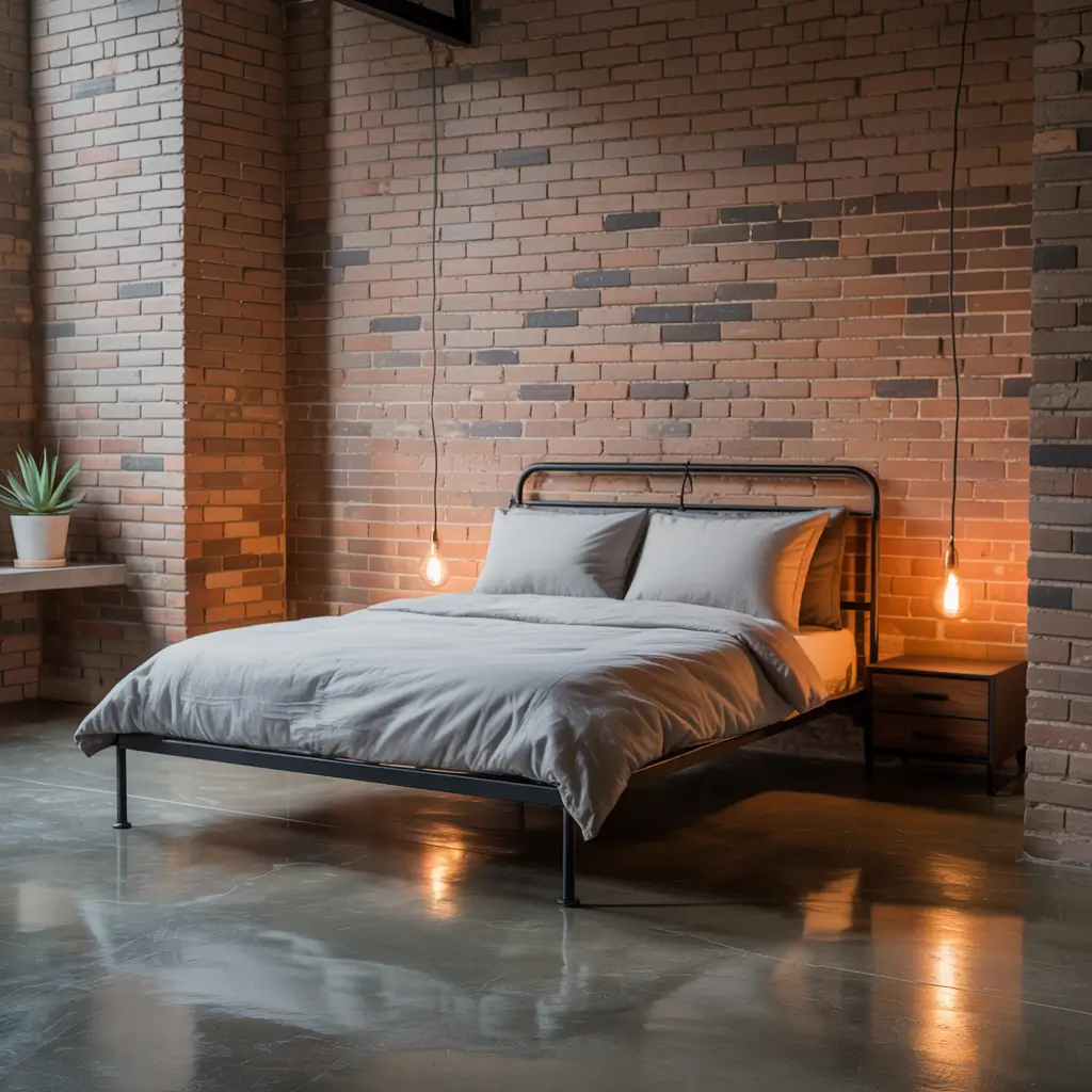 Here’s the thing about industrial style in guest rooms: you need to balance the hardness with comfort. I added soft, luxurious bedding and plush pillows to offset the metal bed frame and exposed brick. Nobody wants to feel like they’re sleeping in an actual warehouse, you know?