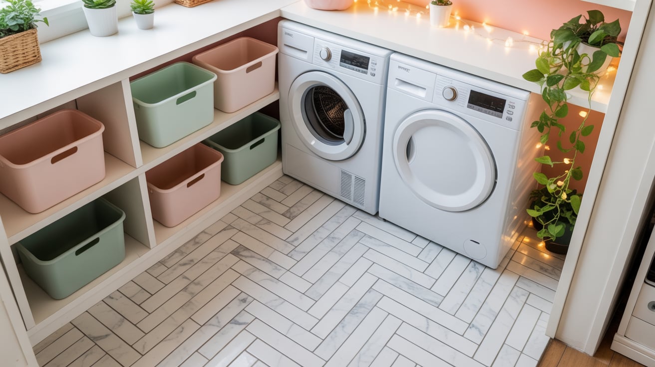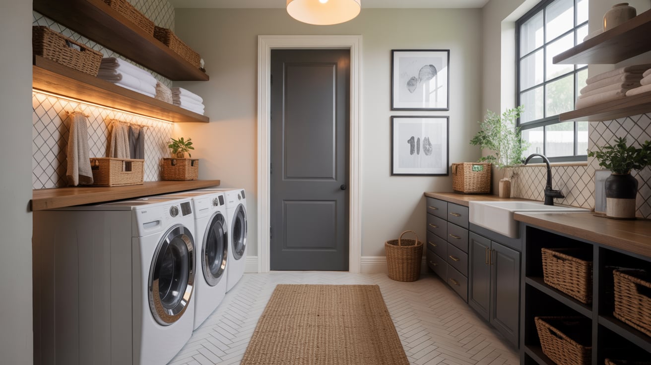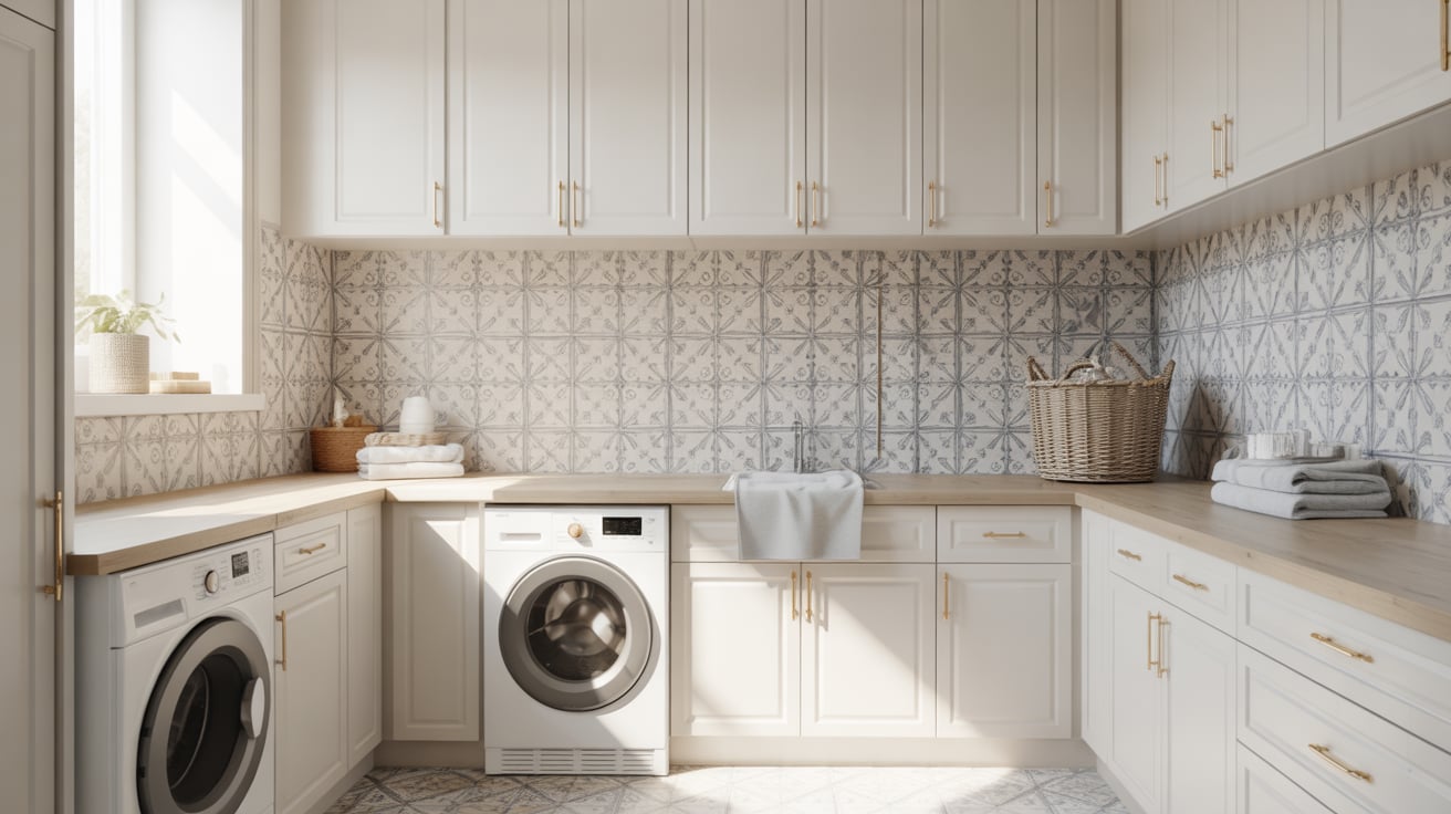 The best part? You don’t need a massive budget or a full renovation to make it happen. Even small upgrades — like new tiles, a coat of paint, or a creative pattern — can refresh your laundry room and make laundry day a little more enjoyable. Each idea here was designed to help you create a space that feels fresh, durable, and 100% you.