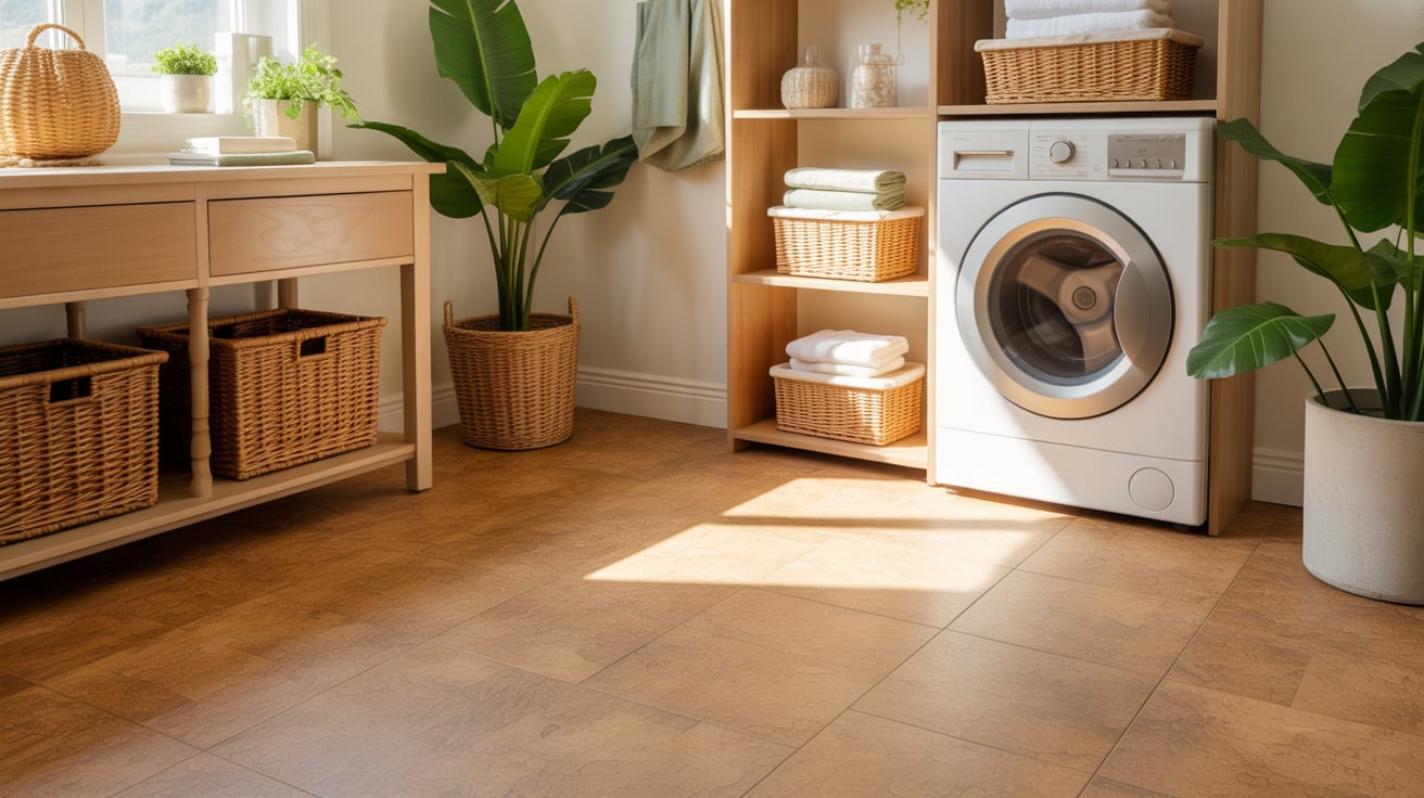 I once helped a friend redo her laundry room, and she chose cork — the moment we stepped on it barefoot, we knew it was the right choice. It’s warm, cushioned, and eco-friendly.
